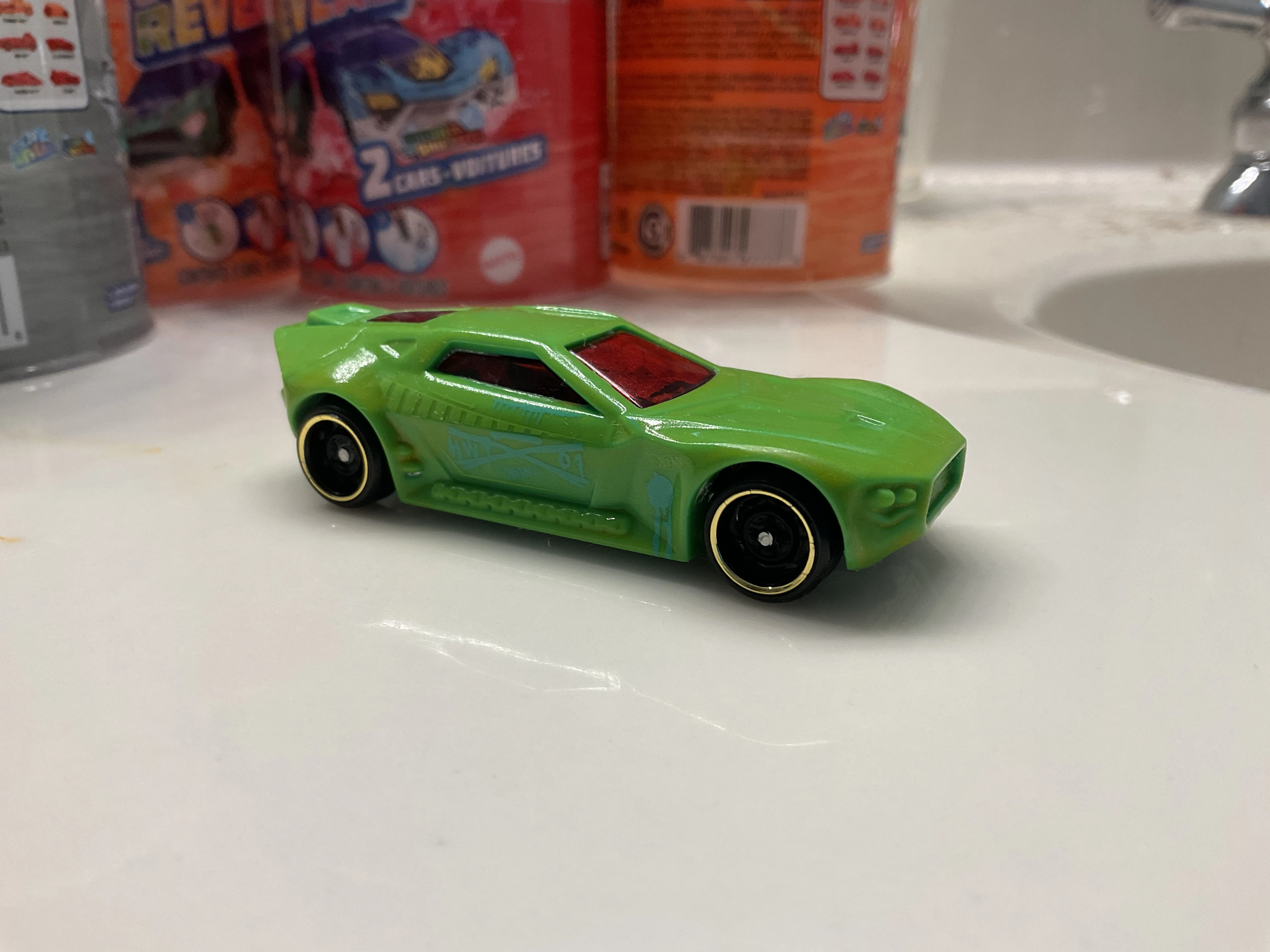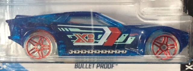 Bullet Proof is a depiction of an armored muscle car with bullets across the vehicle. The casting is co-molded. The body is formed by ejecting two colors of plastic in the mold. Due to cost cutting, Bullet Proof lost its co-molding in 2016.