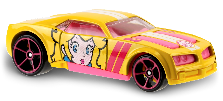 Yellow | Magenta & White stripes on top, Magenta stripes & Princess Peach on sides | Yellow / Plastic |