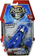 Buster Tank is a 1:43 Battle Vehicles release that first debuted in 2009 to coincide with the release of the Hot Wheels: Battle Force 5 television series. It is a 1:43 depiction of the casting Buster Tank and features a button-activated attacking function.