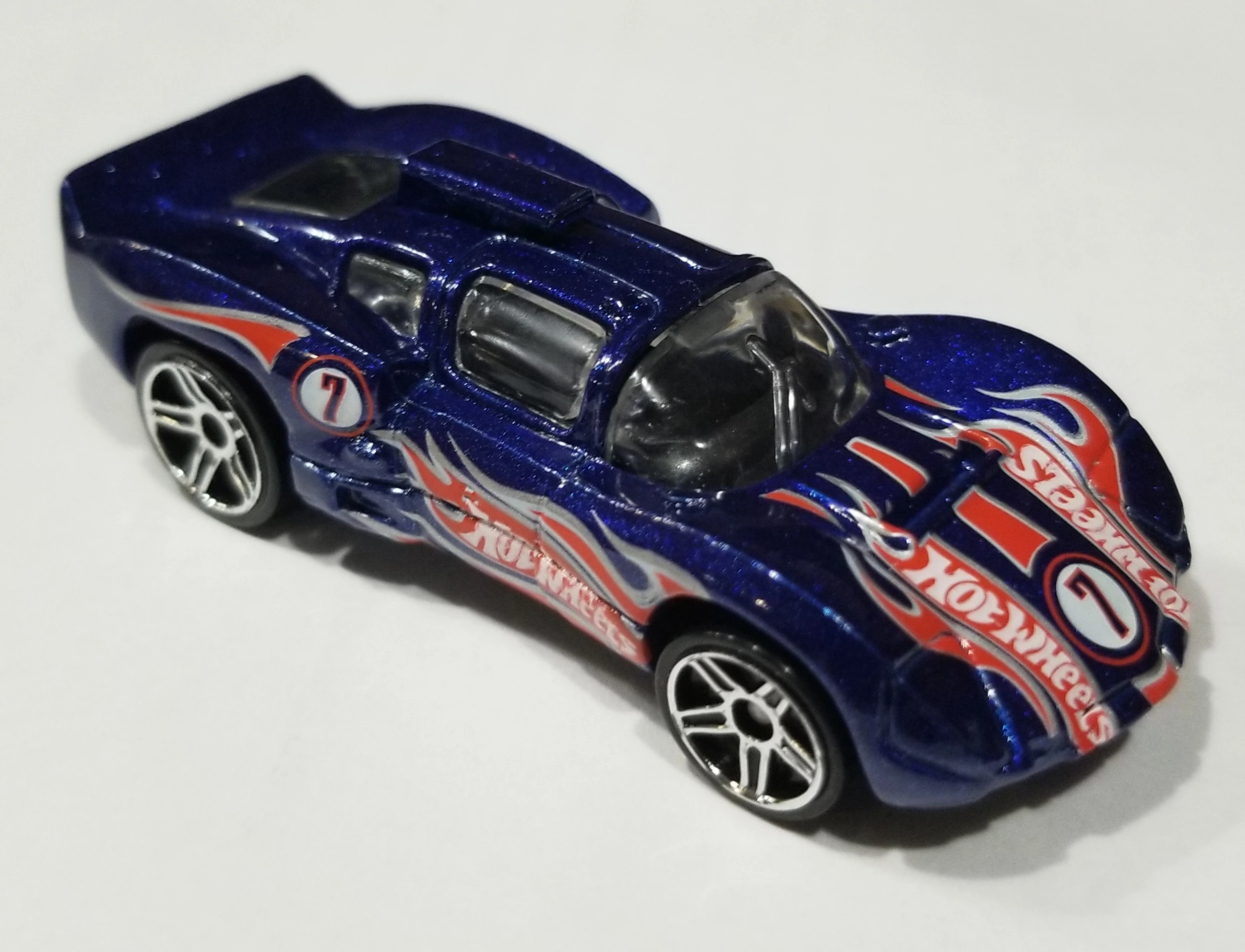 Metalflake Dark Blue | Red, White & Silver tampos w/ Hot Wheels logo & '7' on hood & sides | Black / Plastic |