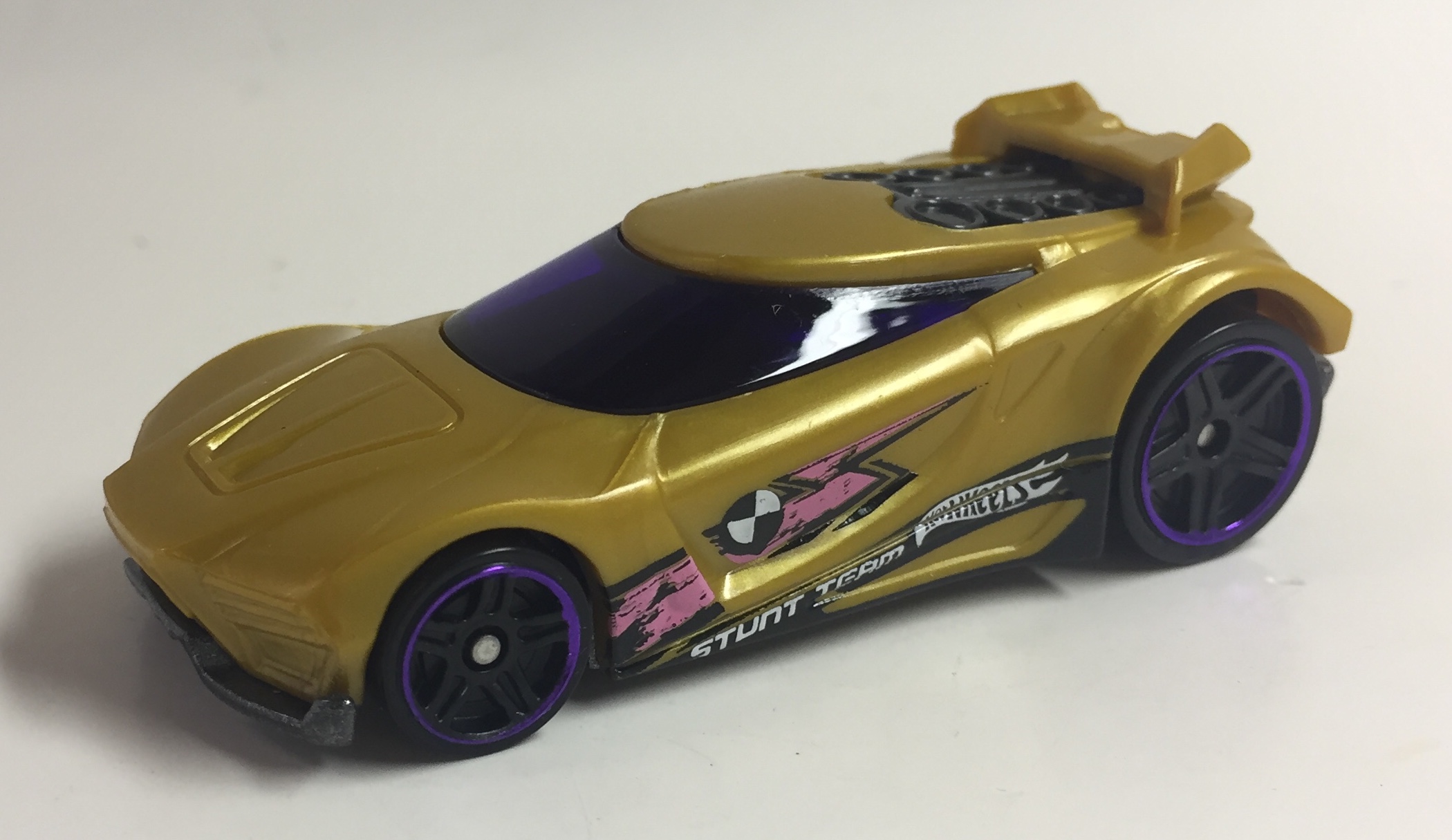 | 2018 | Multipack Exclusive | Gold | Pink, White & Black. "Stunt Team" and Hot Wheels Logo | Gloss, Metalflake Gray / Metal |
