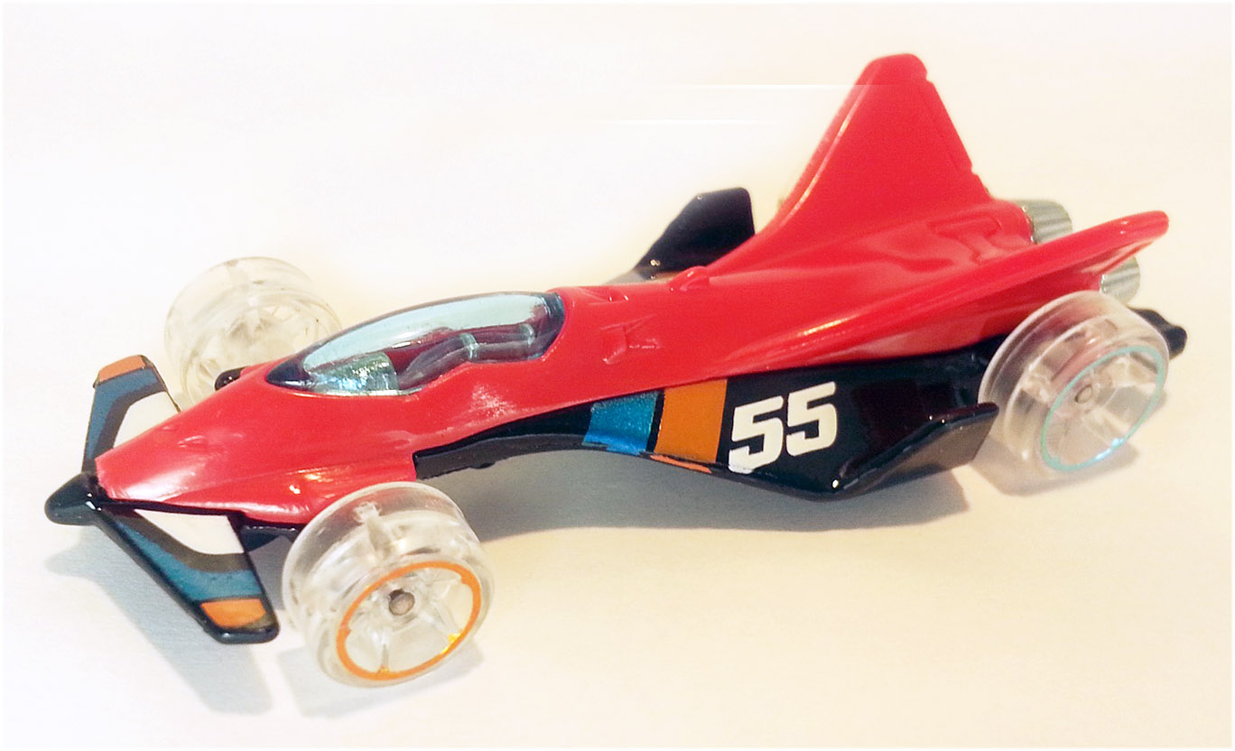 Red | White, Blue, Orange, #55 & Hot Wheels Logo | Black / Metal |