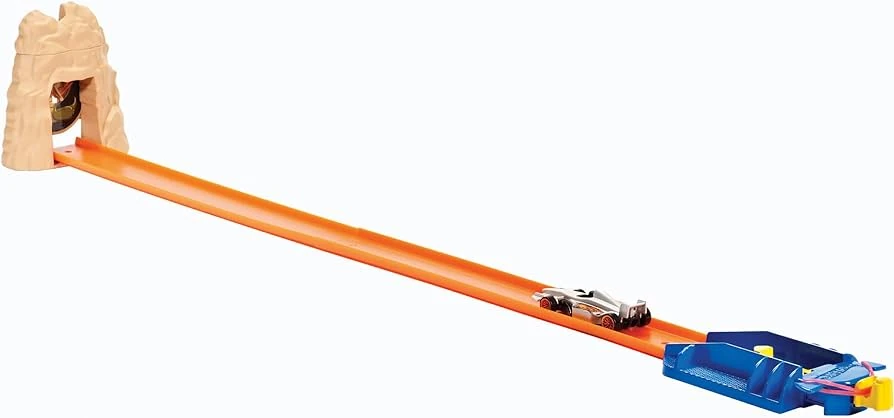 Test your speed and guts, with the Hot Wheels Cobra Cave Track Set. Set your Hot Wheels car at the launcher to reach top speeds into the Cobra Cave. Speed past he venomous creature or get stopped by his fangs! Fun to challenge Hot Wheels cars of your own and with friends. Make it past the cunning cobra, on the Hot Wheels trick track.