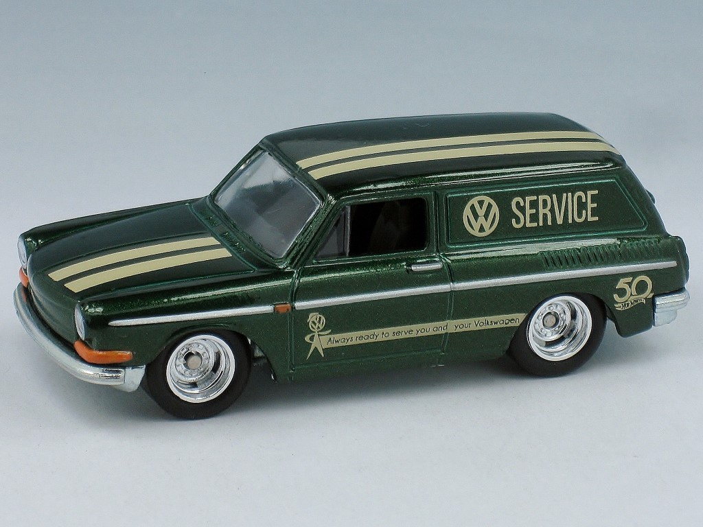 This casting depicts a custom 1969 Volkswagen Squareback panel delivery; the panel delivery was the least common of all Type 3 variants and was only produced in Germany and Australia. This model was originally named Custom '69 Volkswagen Variant before it was renamed to its current name in 2011.
