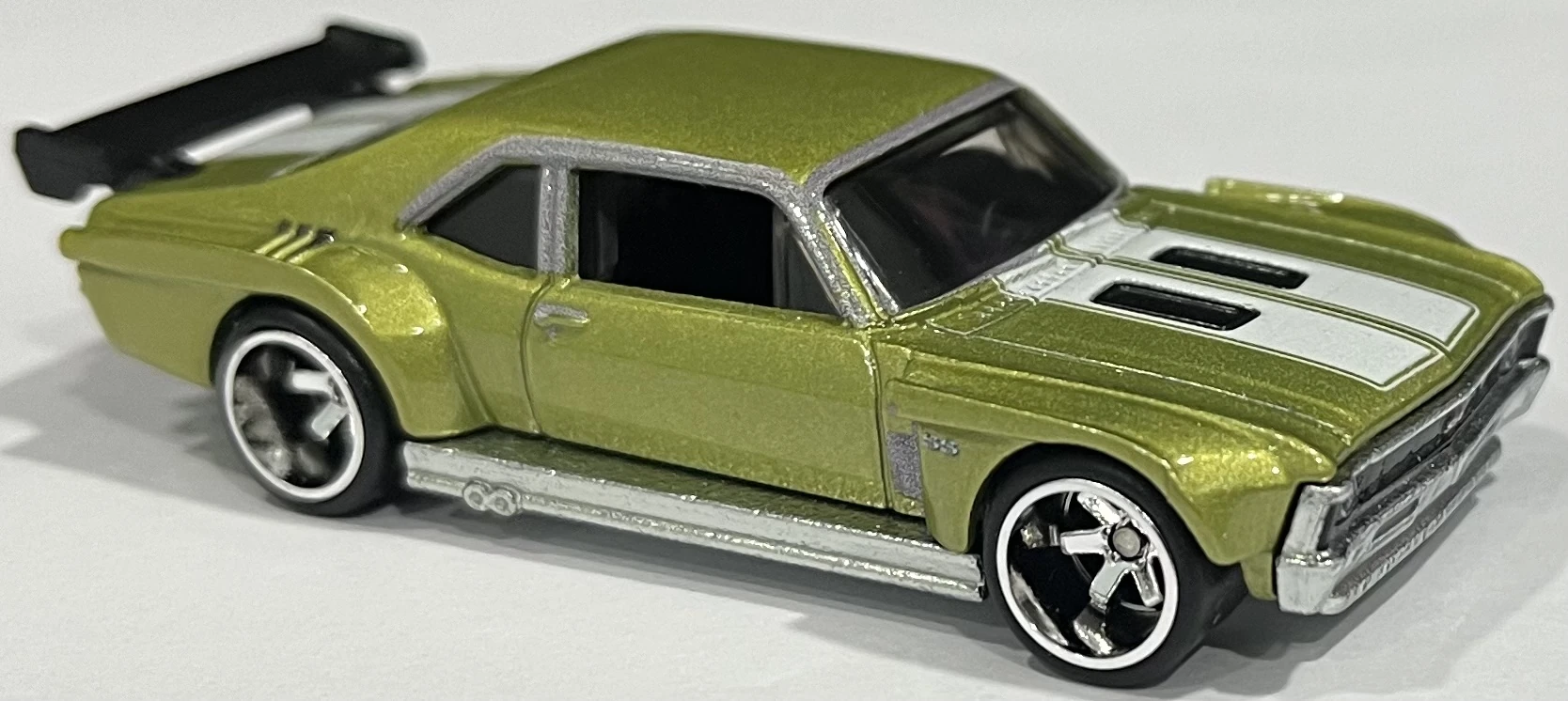 This casting depicts a 1970 Chevrolet Nova with a widebody kit, wing and full rollcage. The casting is unofficially referred to as the "Novazilla" within Hot Wheels Design. The casting was named the '70 Nova GT during development.