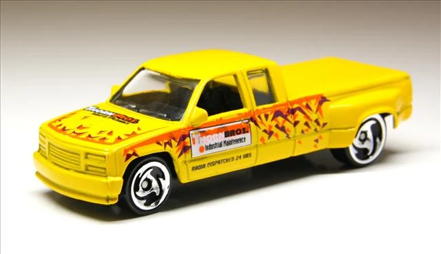 | 2000 | Big City Trucks 5-pack | Yellow | Orange, magenta, black & white graphics & "ThornBros. Industrial Maintenance," "Radio Dispatched 24 Hours." Hot Wheels logo on passenger front door. | Black / Plastic |