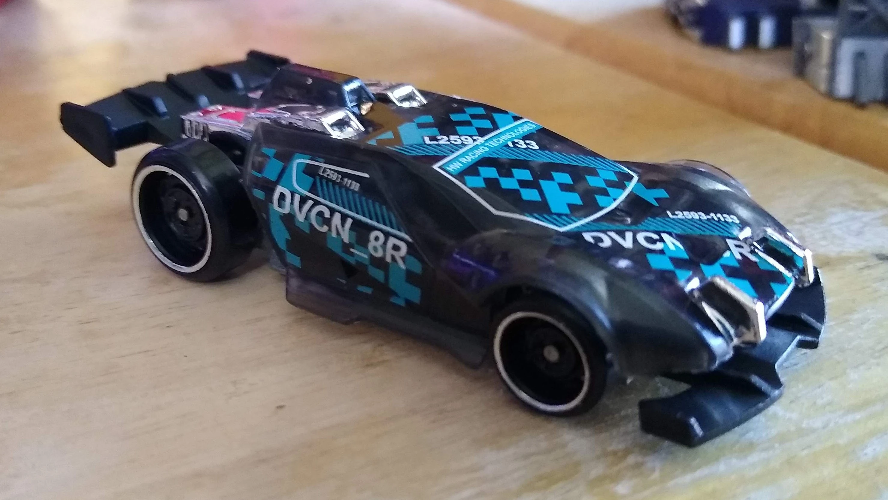DAVancenator is a futuristic cyberpunk race car. This was Dwayne Vance's first basic car design since rejoining Hot Wheels in 2019; its name is a play on his initials. Graphics for the initial release were done by Leeway Chang; the car was sculpted by Manson Cheung.
