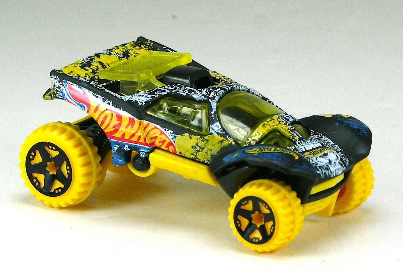 2013 | HW Stunt: Desert Force | Matte Black | Team Hot Wheels Tampos and Hot Wheels logo on sides | Yellow / Plastic | Yellow tint | Black | Yellow tires, Black OR5SP | X1920 | Malaysia | Base Code(s): E48, E51, E52 |