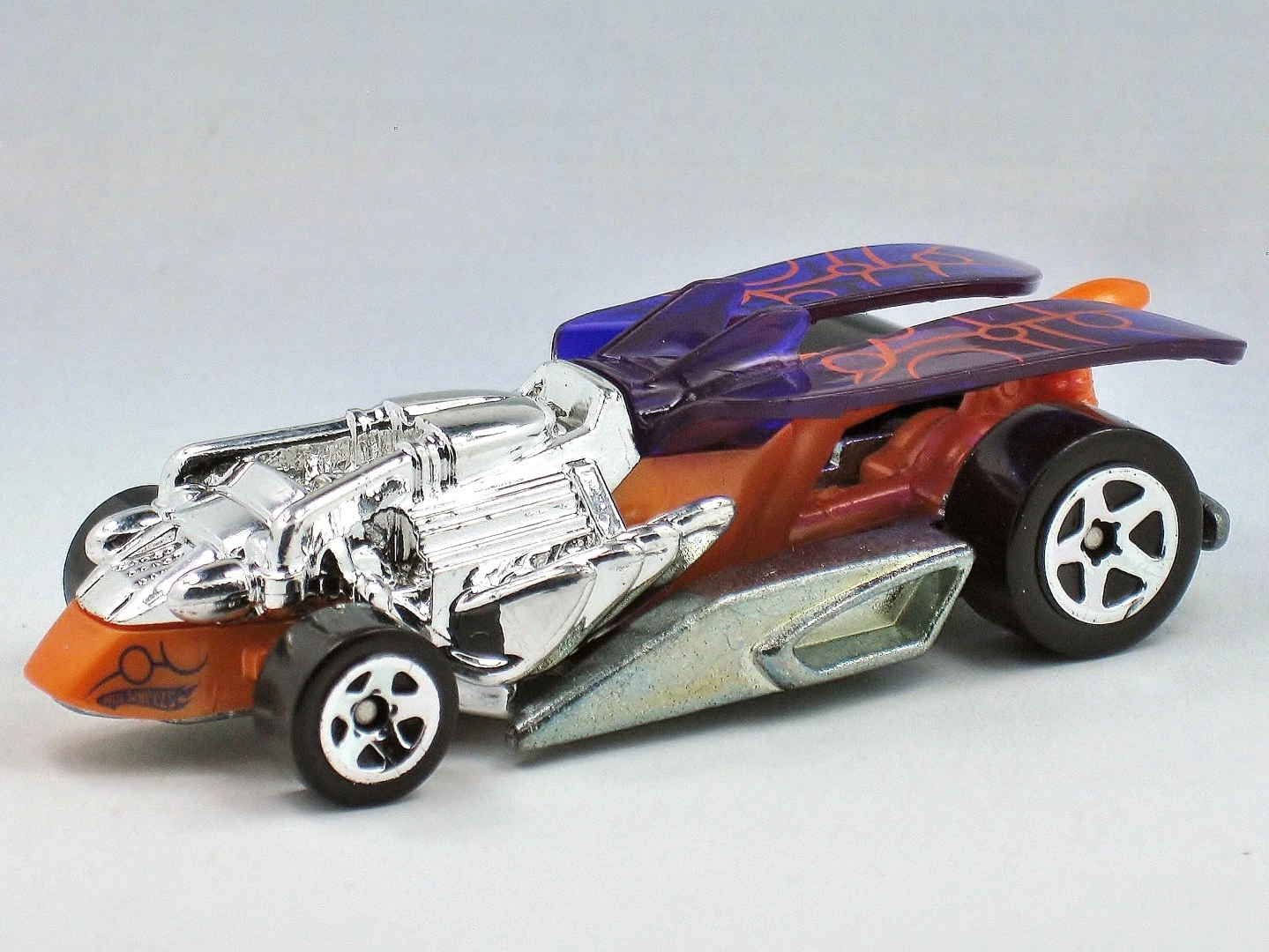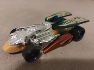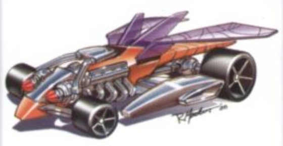 Draggin' Tail is a dragonfly-shaped hot rod. The vehicle has a massive exposed twin-turbo V8 engine at the front, with seemingly no place for a driver. It also has two literal wings that help with downforce and flight. In a sense Draggin' Tail could be seen as a cousin to Buzz Bomb.