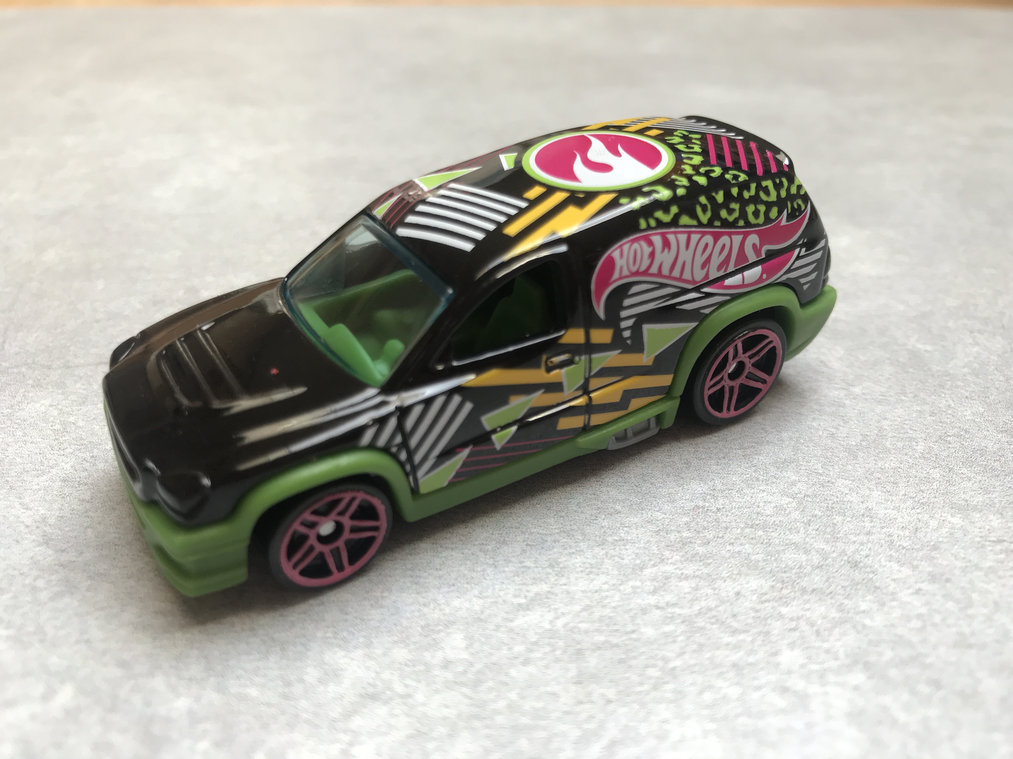 Black | Green, White & Pink tampos & HW logo on sides, TH logo on roof | Grey / Plastic |