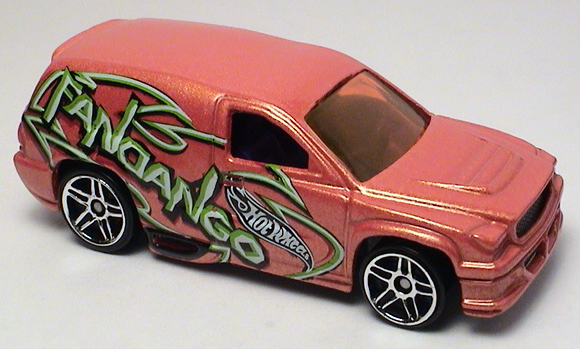 Fandango is a depiction of a modern panel van resembling a Dodge Durango. It is notable for having a large amount of space at the rear for graphics application, allowing it to have flashy tampos for many releases.