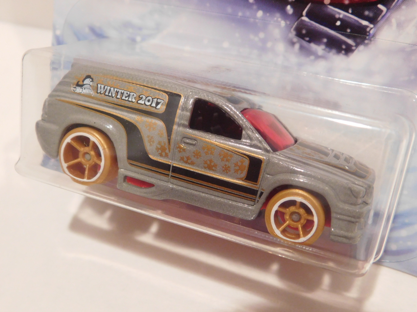 Grey | Black Stripes, Gold Snow Flakes on sides and hood, Winter 2017 on sides. | Red / Plastic |