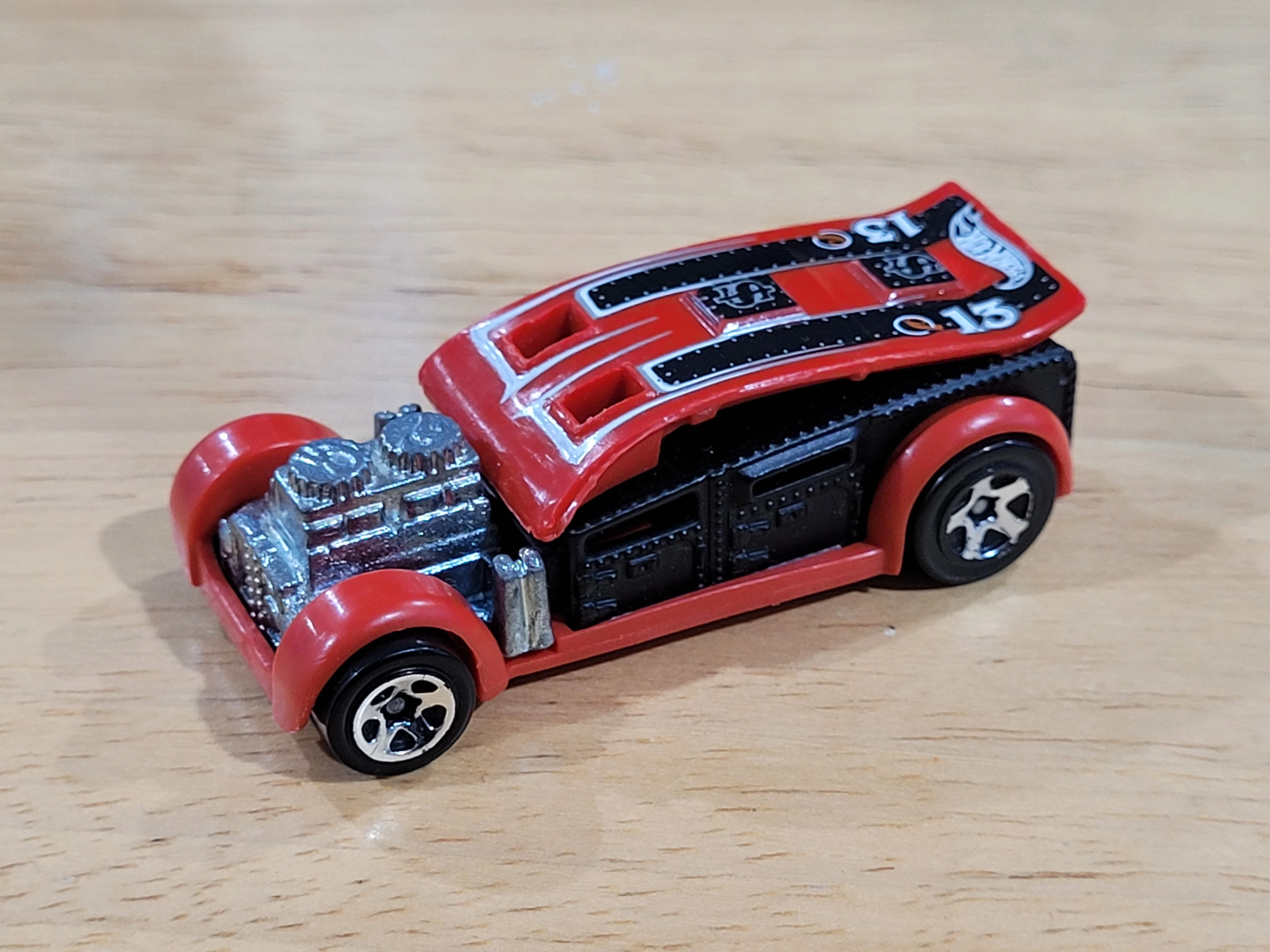 Red | Red flames, Red & White Hot Wheels logo on the spoiler | Chrome / Plastic |