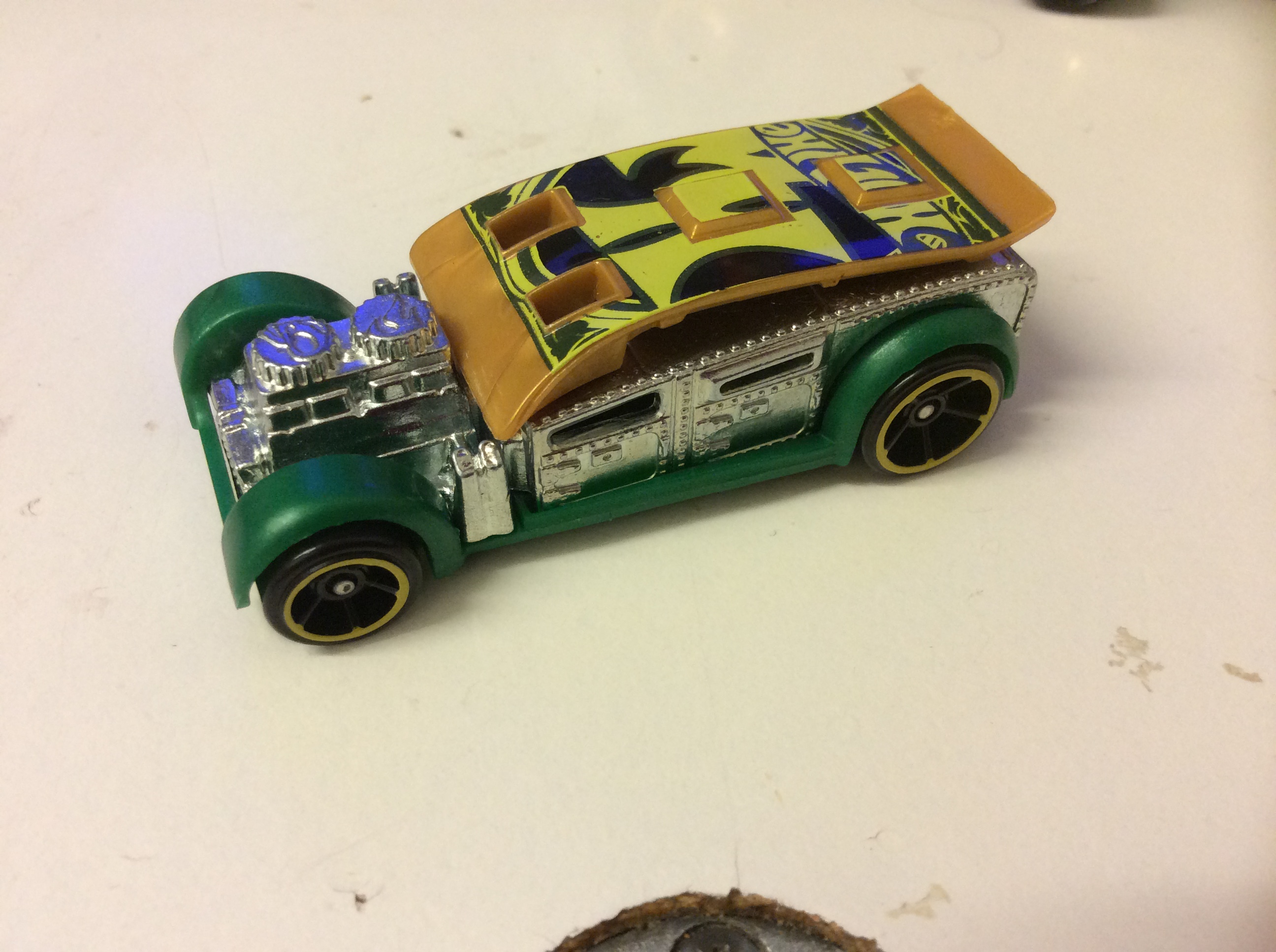 Super Rigs | Unpainted | Yellow, dark green & black stripes on roof, “HW” “hot wheels” on roof | Black / plastic |