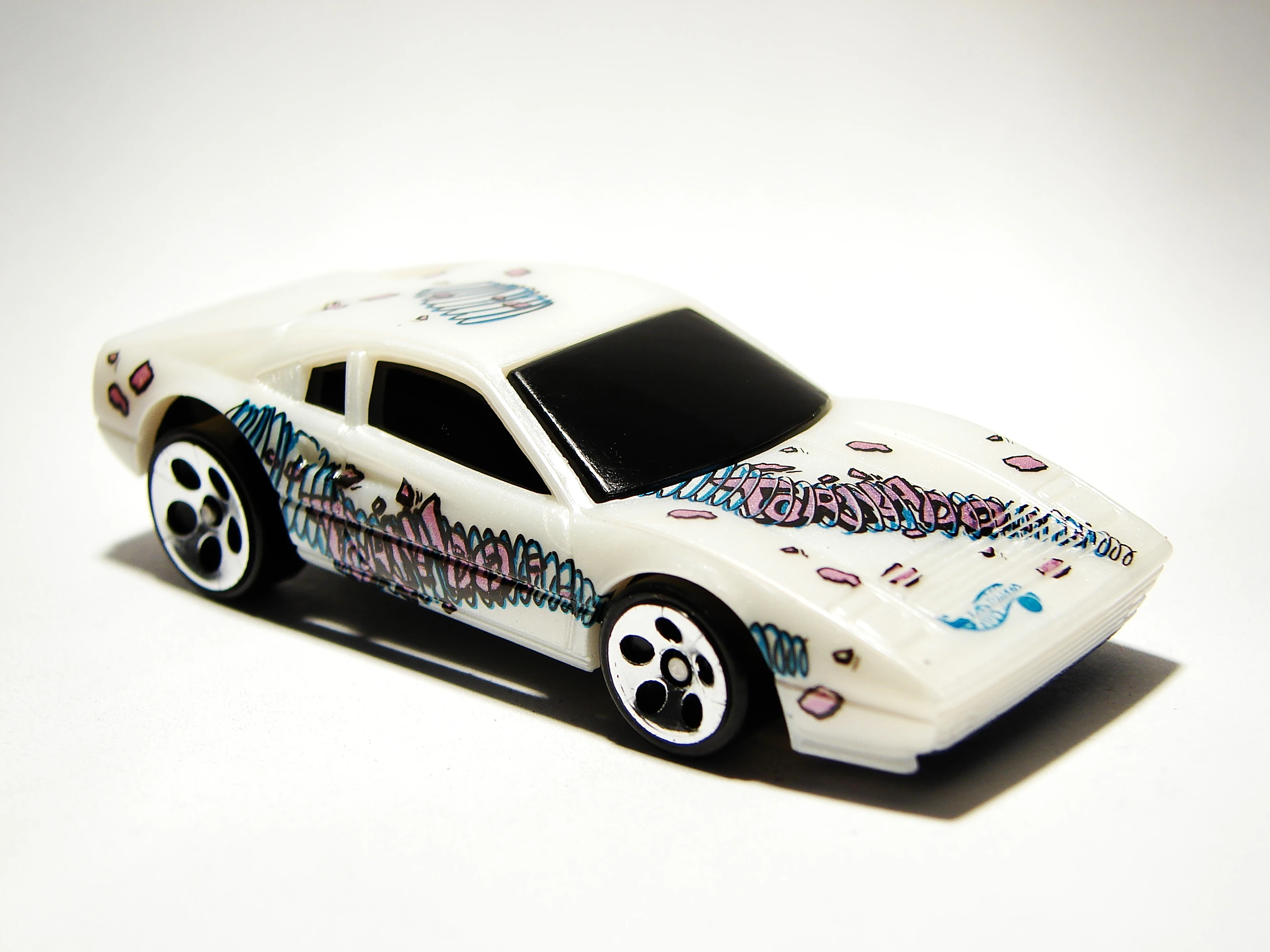 This casting is a modification of the Power Command Racers Ferrari 308 casting, featuring the removal of all Power Command-related features to facilitate its use in the mainline. As a result of it being included in the Power Command Racers series all releases of this casting do not feature an interior. This casting has never actually been referred to as the the Ferrari 328 in any official capacity, with any releases referring to this model by name referring to it as a Ferrari 308, but is named as such in this article and various other collector sites due to its passing resemblance to one.