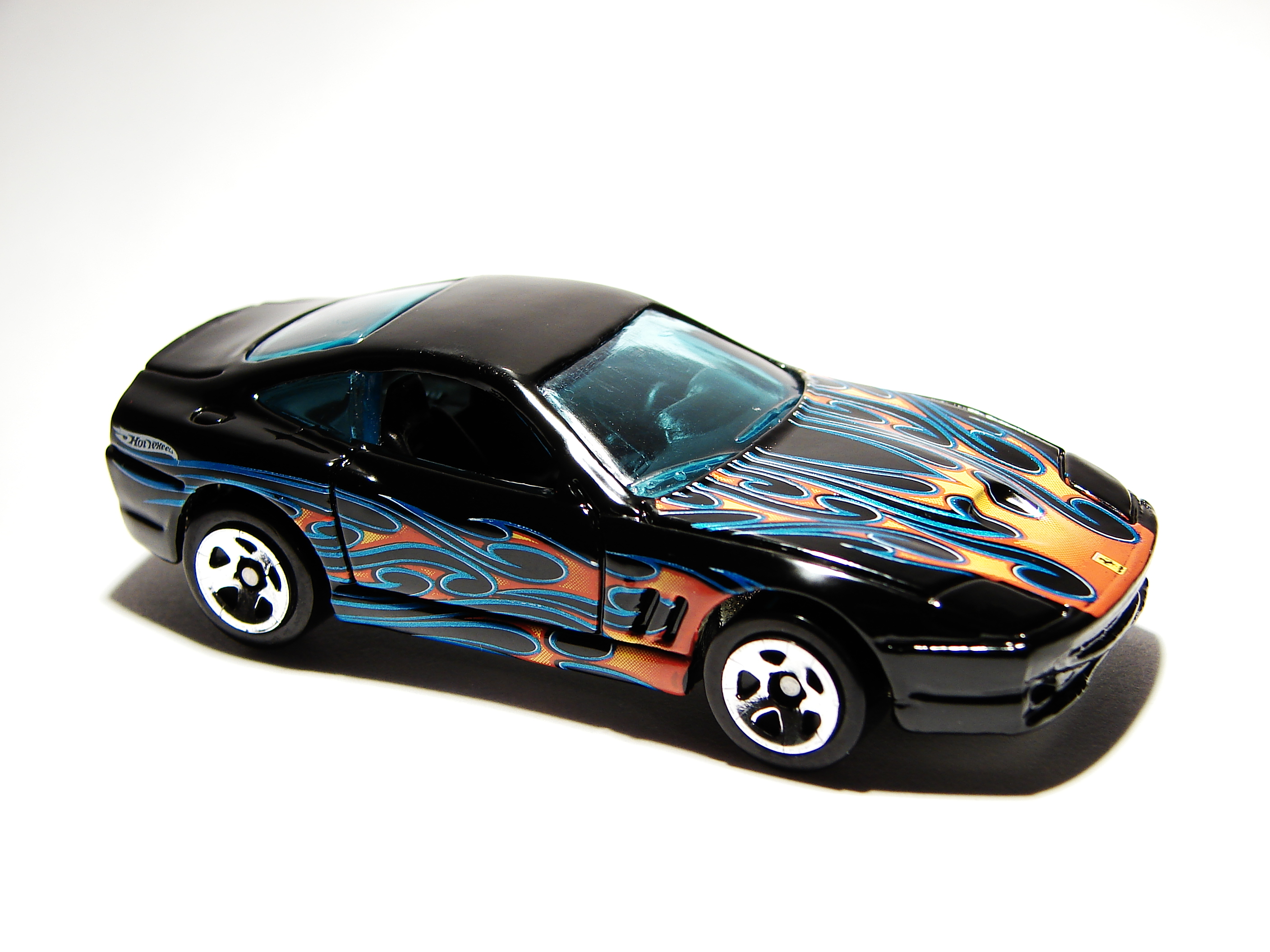 Black | Light Blue, Red, and Yellow on sides and hood with Hot Wheels logo on rear quarter panel | Unpainted / Metal |