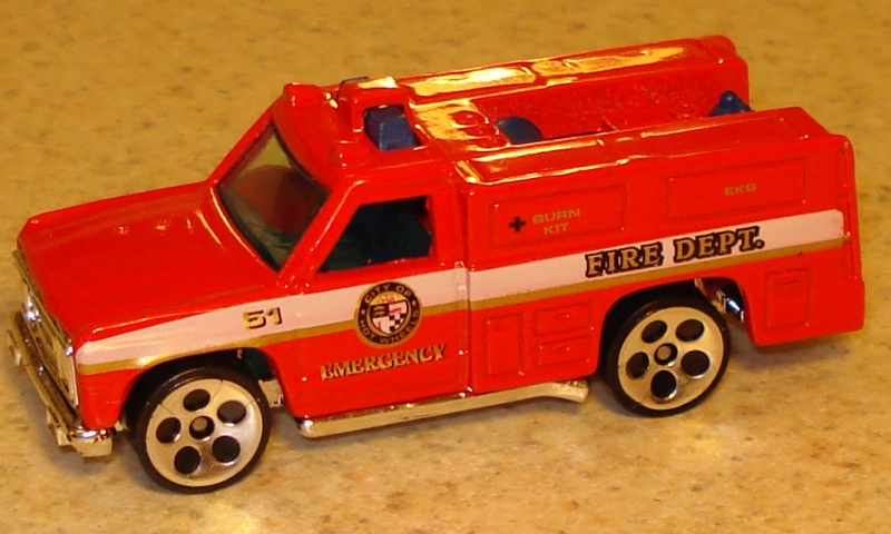 | Ambulance | White | Red, Black, Gold "Fire Dept." "AMBULANCE" "18" | Red / Plastic | Blue tint | White | 7SP | Malaysia | ||