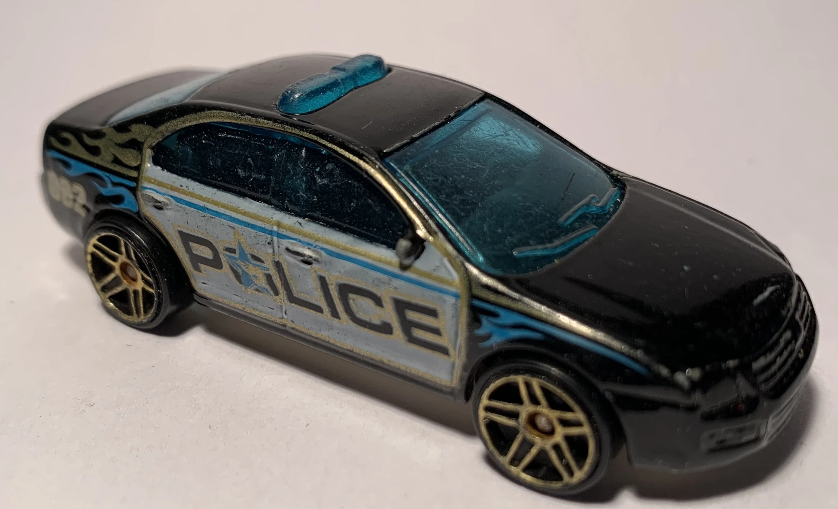 Metalflake Dark Blue | Orange, White & Light Blue, "Police" on sides & hood, "HW09" rear quarters | Chrome / Plastic |