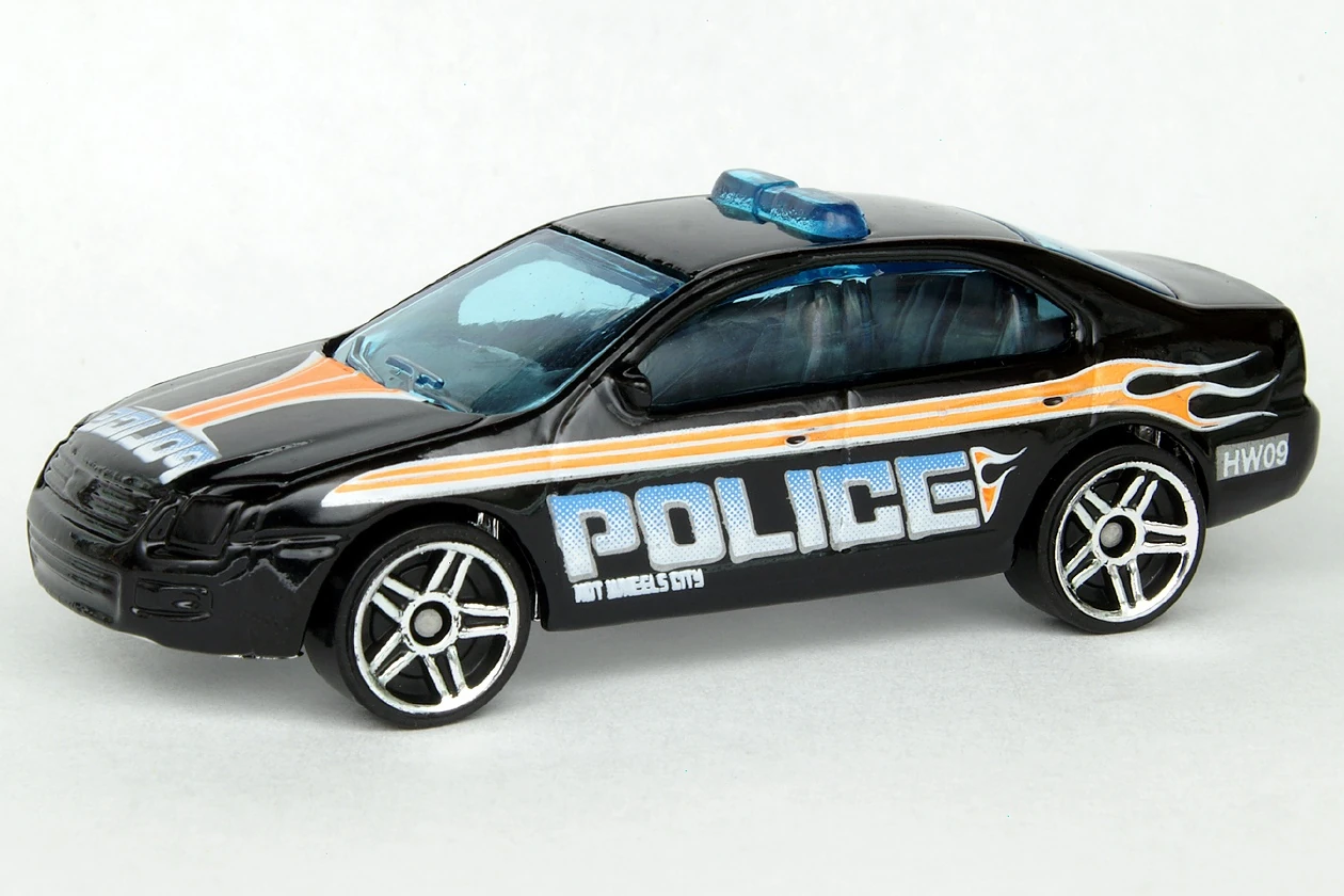 Black | Orange, White & Light Blue graphics, "Police" on sides & hood, "HW09" rear quarters | Chrome / Plastic |