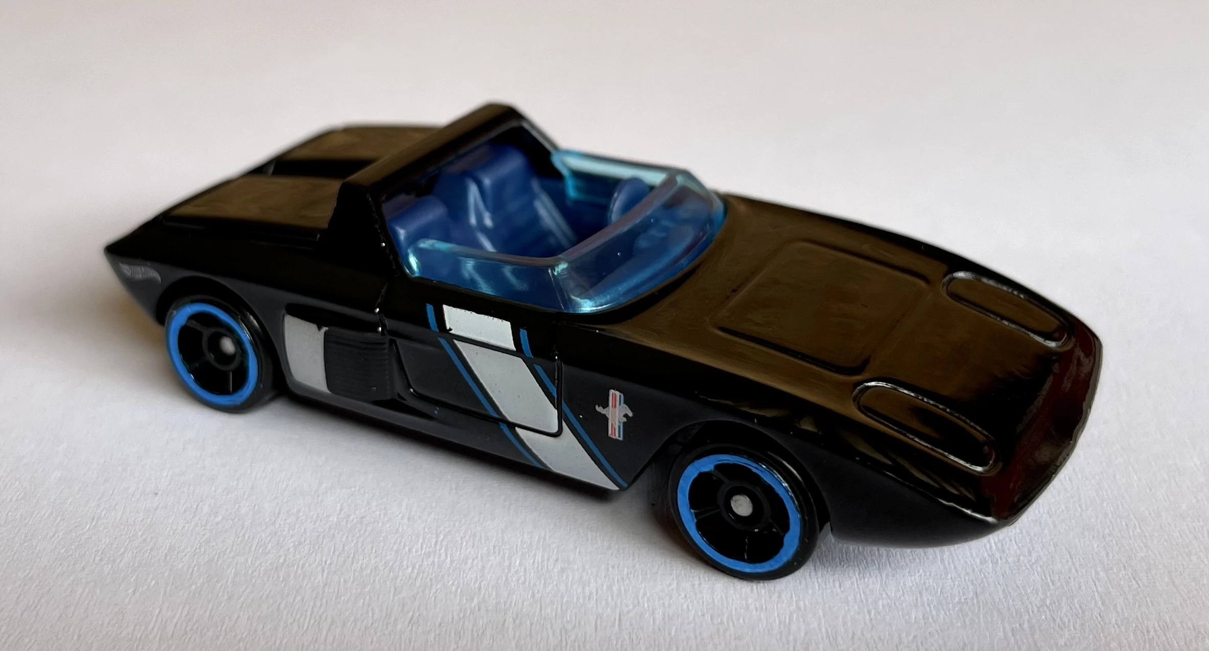 | '62 Ford Mustang Concept | Gloss black | Silver and blue stripes on sides, Mustang badge on sides | Gray / Plastic |