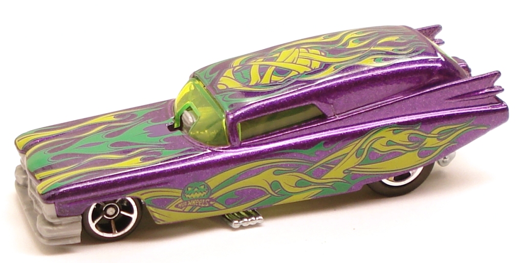 | V1426 | '59 Cadillac Funny Car | Metalflake Purple | Yellow, Green & Purple flames on sides & across top | Rear: 5SP Front: OH5 |