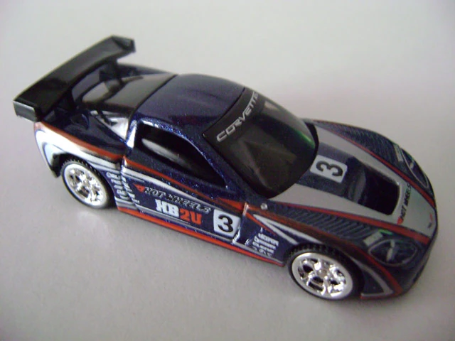| M3062 | Corvette C6R | Metalflake Midnight Blue | Metallic Brown, Metallic Silver + White Racing Style Designs. "HB2U" As Theme, Hot Wheels, Corvette Badges | RR6SP | Base code(s): |