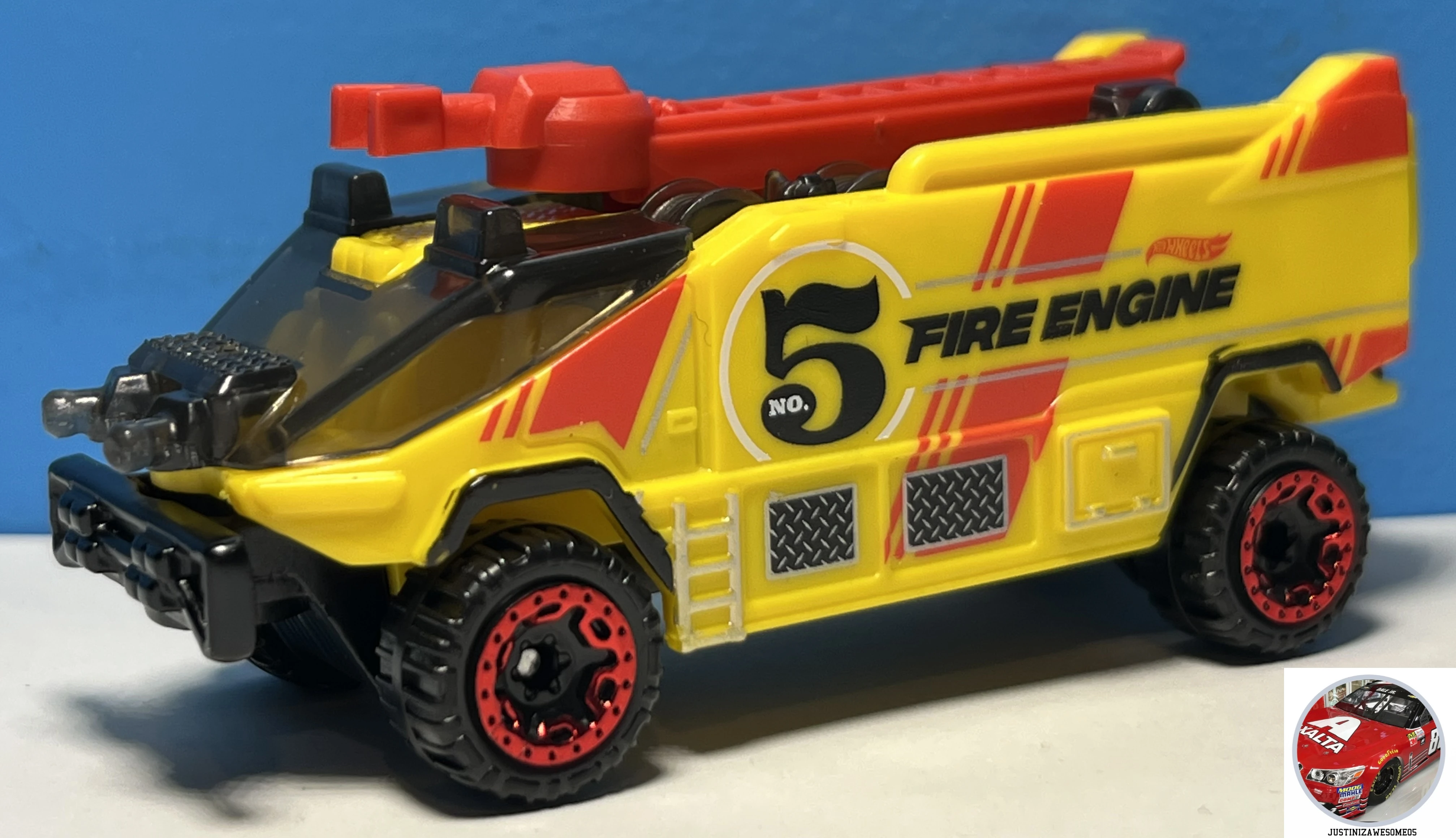 | Runway Res-Q | Yellow | "FIRE ENGINE No. 5" on sides, Hot Wheels logo | Metallic Black / Metal |