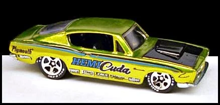 The Hemi Cuda is a Hot Wheels casting based on the production car of the same name, debuting in the Hot Wheels Classics Series. This casting has also been called Plymouth Hemi Cuda and '68 Plymouth Hemi Cuda. The Chassis of this casting clearly reads Hemi Cuda and that is why that name is used for the title of this page.