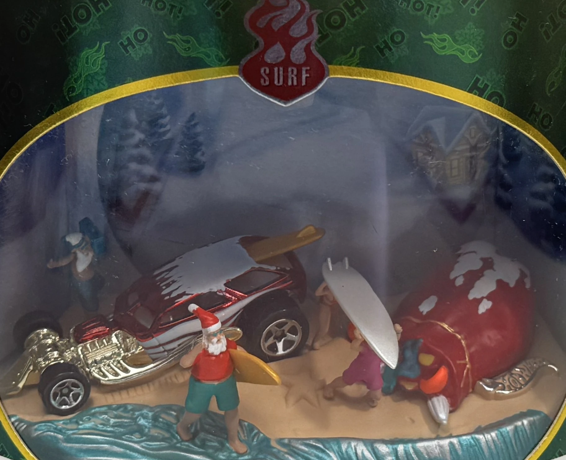 The Hot Wheels Holiday Cars where the first series of Christmas related cars designed and detailed to look like Christmas ornaments. Unlike the Hallmark series that came out in the same year, these cars used actual Hot Wheel castings. They either included an extra ornament, or a display for the car that was the ornament.