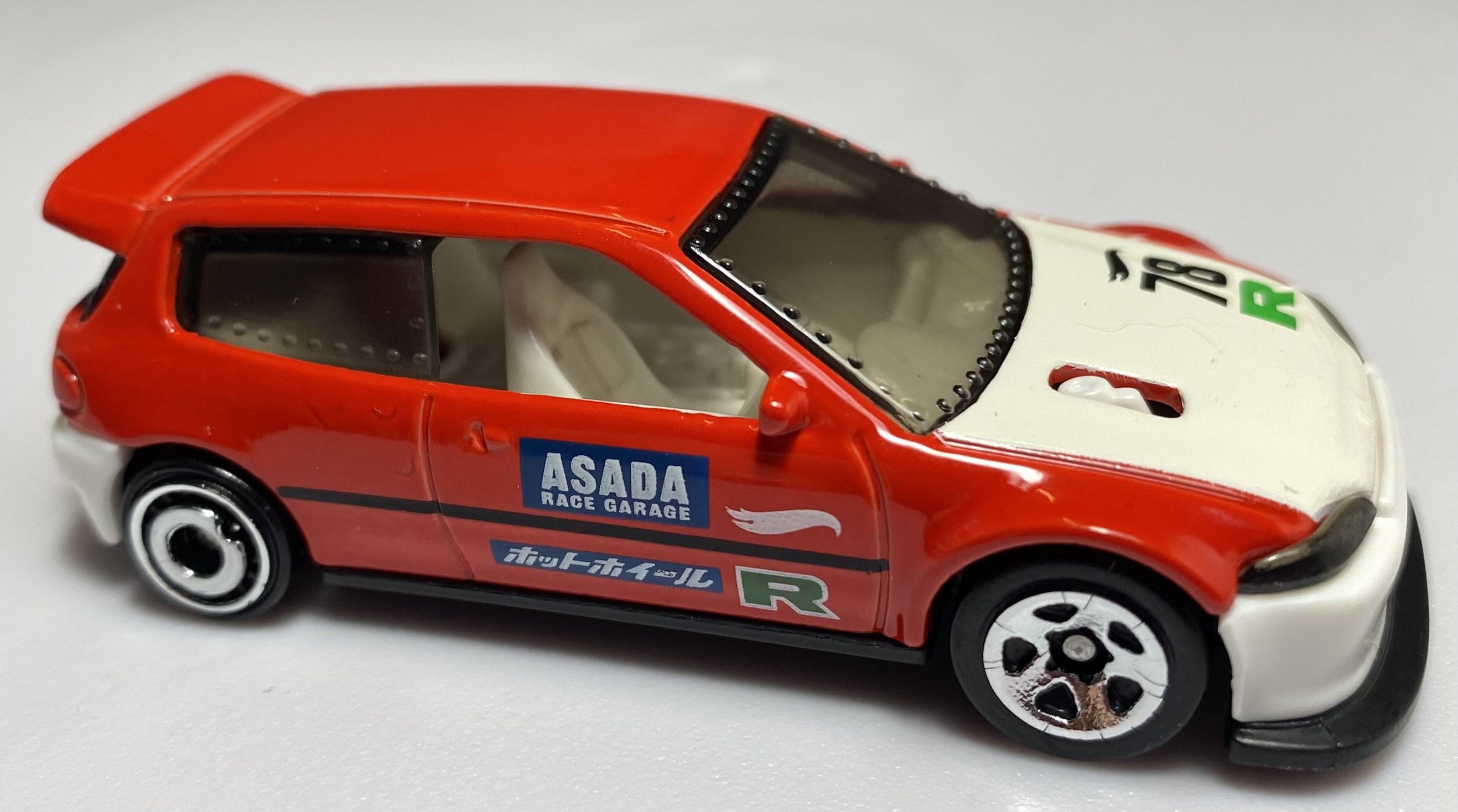 This casting was modified from the Honda Civic EG casting as designed by Ryu Asada. It features right-hand drive, riveted window panels, a widebody kit, intercooled turbocharger and mismatched wheels, with oversized front tires to provide maximum grip to the front-wheel-drive Civic.