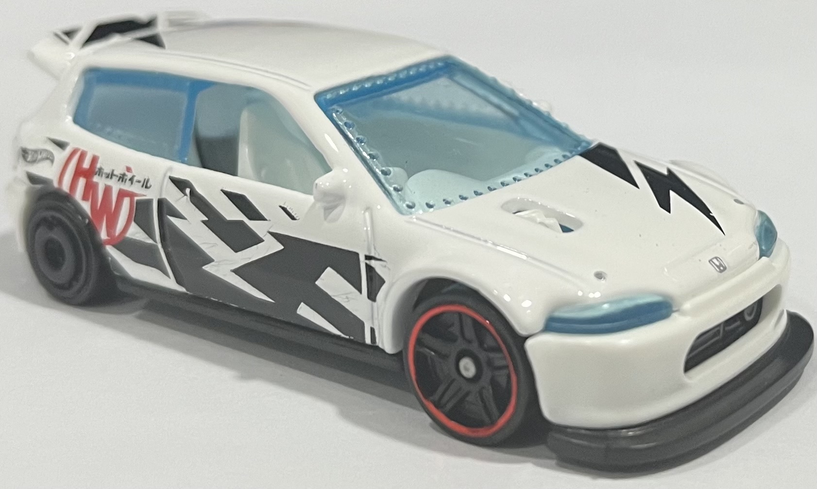 Spectraflame cyan | Black accents, "ホットホィール", "Super TH" on hood and sides, Civic wordmark, "LW", "59" in red heart on sides | Black / Plastic |