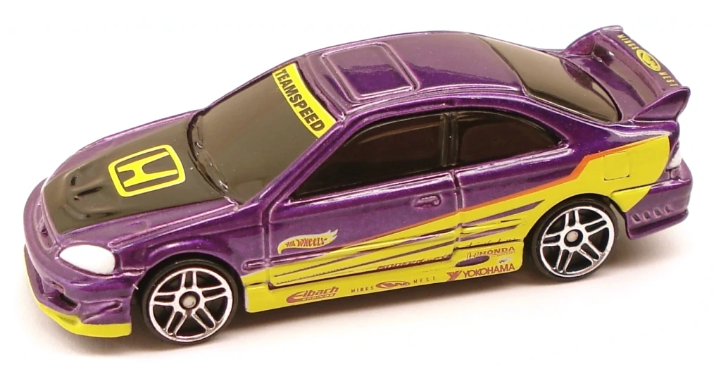 The Hot Wheels casting replicates a specific 2000 Honda Civic Si entered by Super Street Magazine into the Honda Civic Si Challenge; the goal of the challenge was for four automotive magazines (Car and Driver, Sport Compact Car, Super Street and Popular Mechanics) to turn a pre-production 2000 Honda Civic Si into a modified ride with a $10,000 budget within five months, the deadline being 30 September 1999; the cars would be judged on appearance, performance and emissions. The build was overseen by Dave Martis. Modifications to the car included a Wings West Avenger bodykit, Progress Group coilovers, JUN Auto Mechanic-tuned naturally-aspirated B16A2 engine, short-ratio transmission, titanium exhaust and ECU programming, with the engine tuned by Susumu Koyama, Honda Optional Equipment wing, Versus Motorsports carbon fiber hood, Endless brake pads, Cusco LSD, Car Craft custom interior, Modern Image wrap and 225/40R16 Yokohama A038s. The car was nicknamed Ichiban (lit. "No. 1") or "Itchy" for short and won the competition. The car is currently located in Honda America's private collection and is not street legal, having been showcased at a number of SEMA events since.