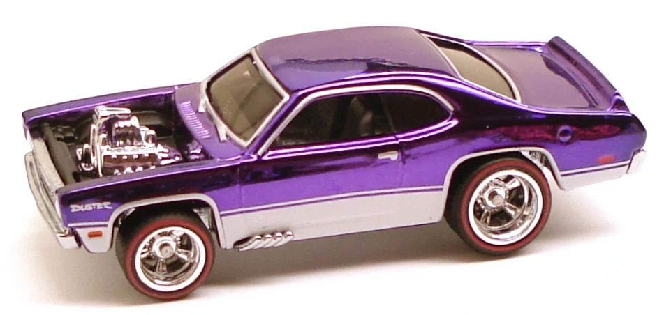 | 2 | Plymouth Duster Thruster | Spectraflame Purple | White Lower Sides & White Authentic "DUSTER" Logos | Chrome-Plated Metal | Smoke | Silver | RR5SP with Red Lines | China | May 12, 2009 | 6,500 |