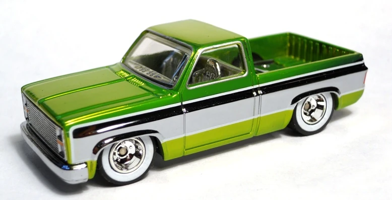 | 6 | '83 Chevy Silverado | Spectraflame Anti-Freeze | Chrome side stripes with White outline. | Chrome-Plated Metal | Light Tint | Chrome | White Wall | China | October 27, 2009 | 3,000 |