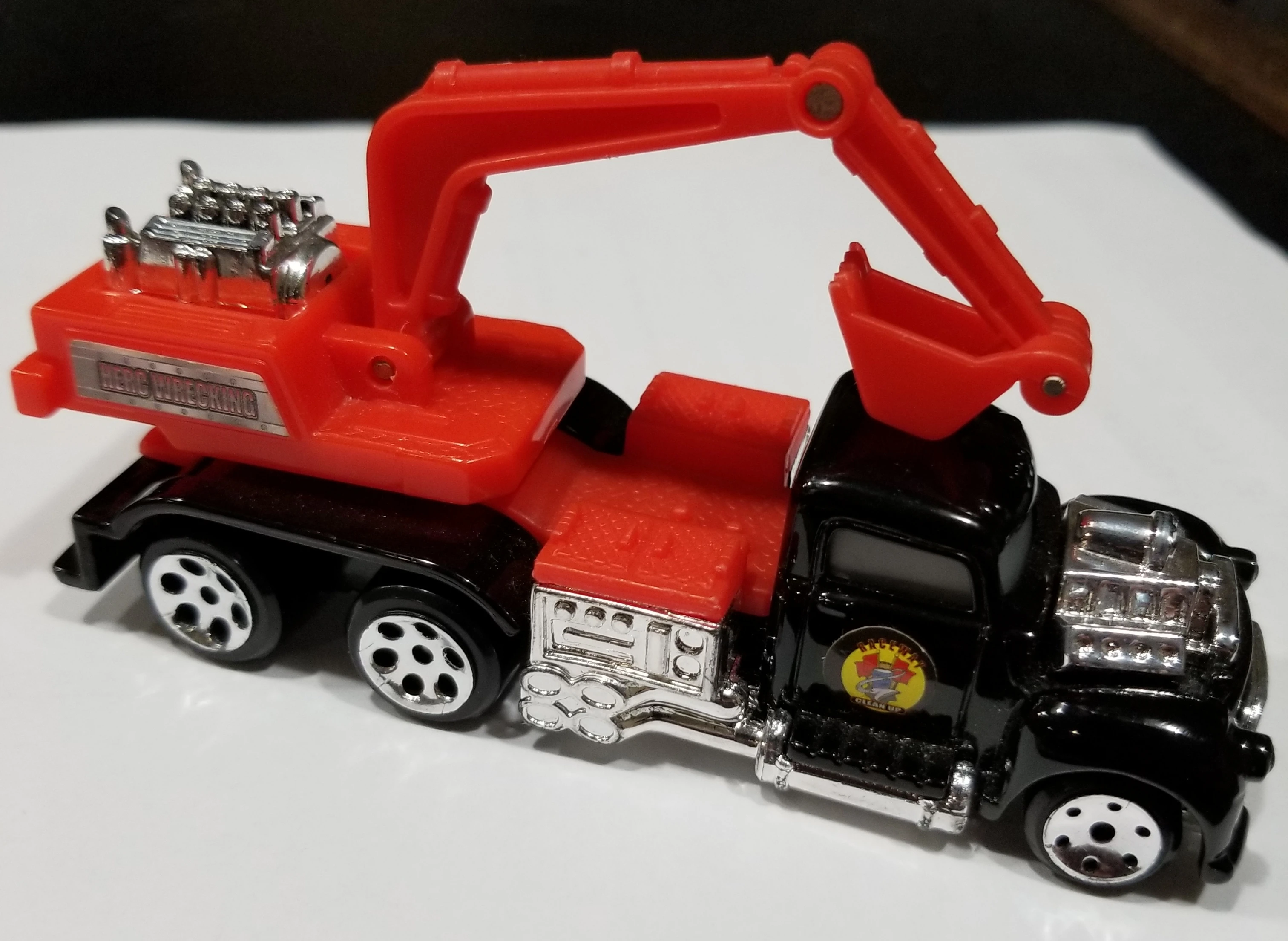 The Hot Rod Tank Truck is an American style semi truck with tanker made for the Hot Wheels Haulers series. Two versions were released with an with a rotating excavator. Unlike most Haulers castings, this casting was held together with only screws instead of rivets.
