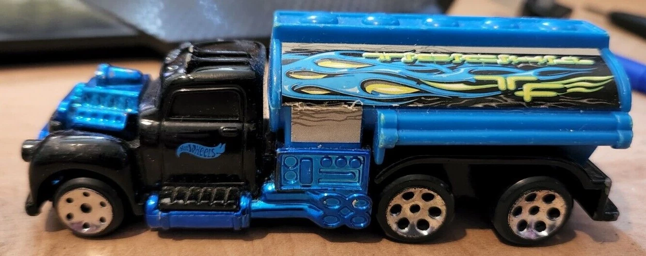 | 2001 | Hot Wheels Haulers | Blue | White | Red stock car illustration, black & white checker pattern, "Speedway Fuel", HW logo | Black / Plastic |