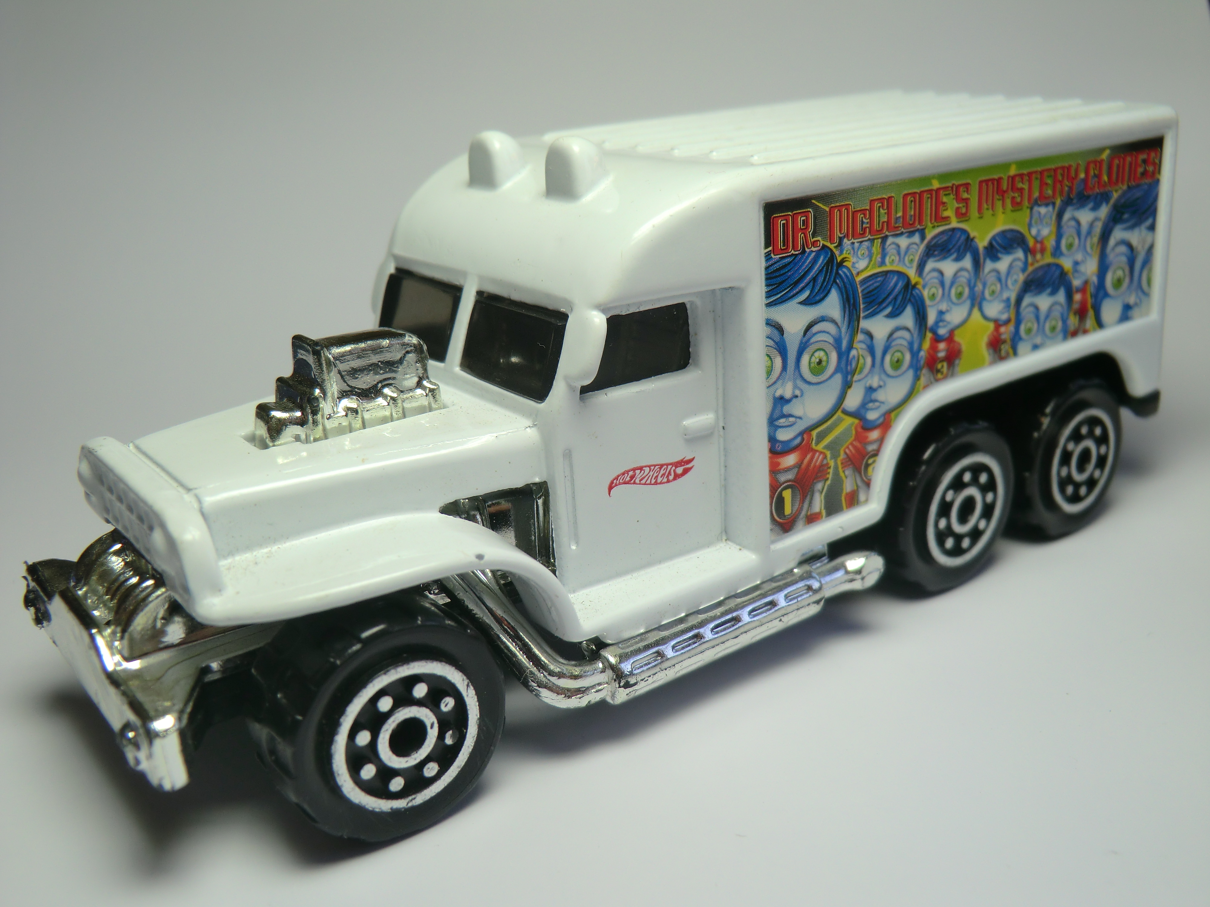 | 2002 | Hot Wheels Haulers | White | Red "MR. McCLONE'S MYSTERY CLONES", 10 numbered clones graphic, HW logo | Black / Plastic |