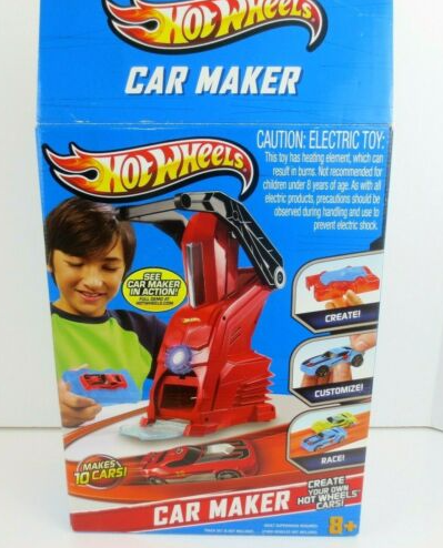 The Car Maker (#Y9172) was a playset set that allows you to design and create your own Hot Wheels car, using wax sticks that you insert into the machine and inject into molds to create a body that fits into the included bases. The machine was designed by Julian Payne.