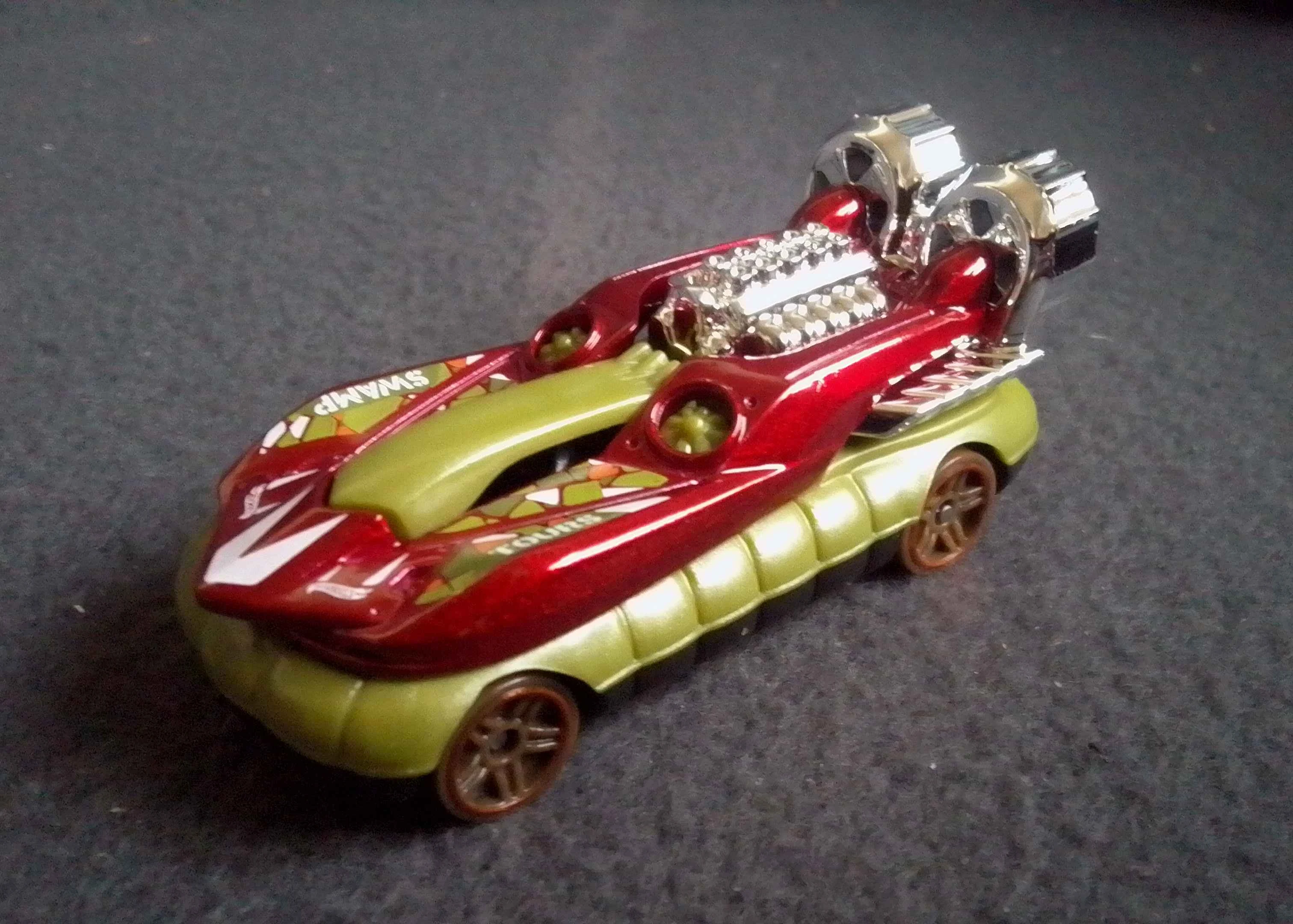 | 2025 | HW Getaways 5-Pack | Metalflake Red | Green, dark green, orange, and white tampos, "Swamp Tours" on top | Black / Plastic |