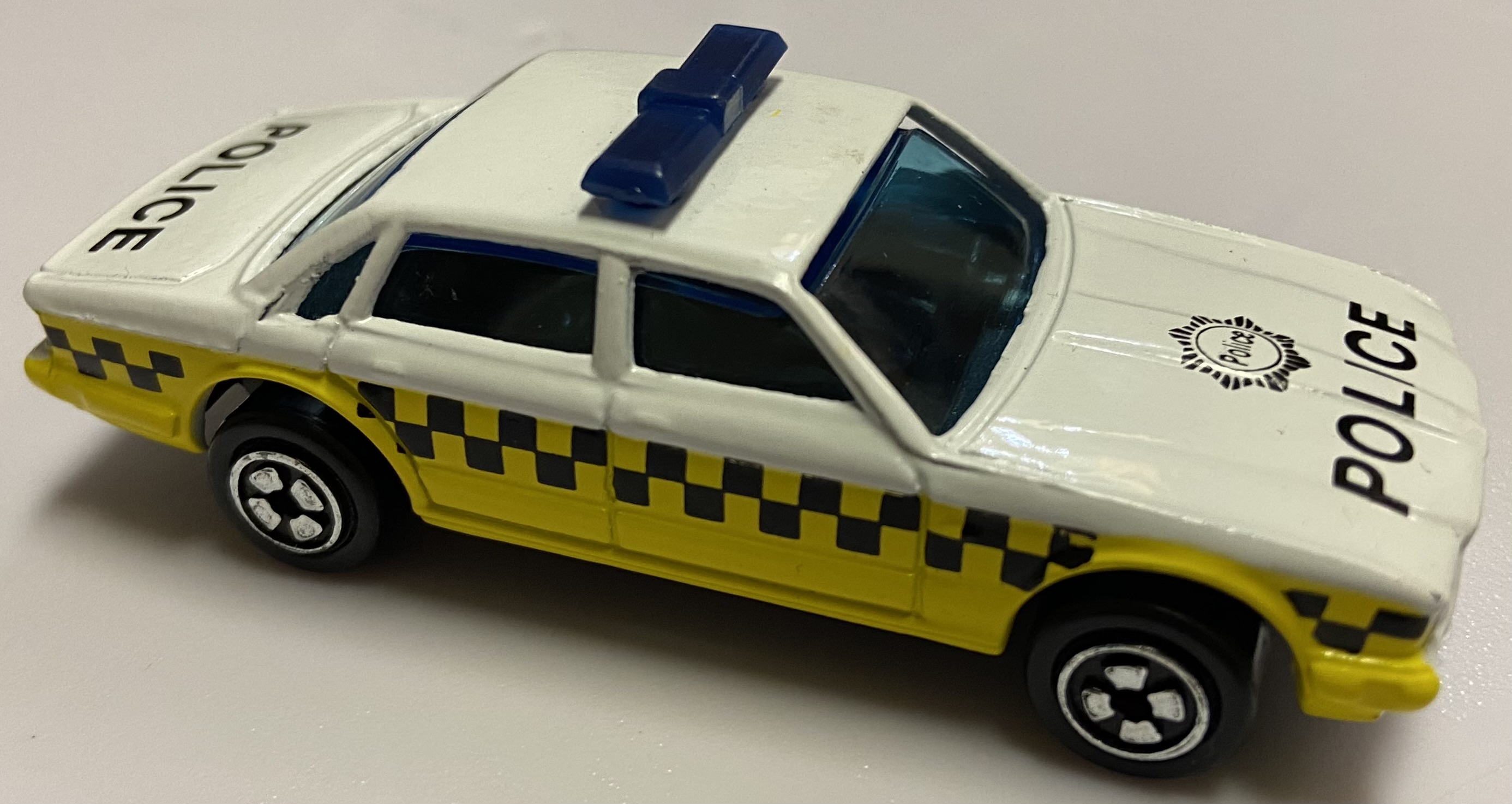 | 1994 | Auto-City | White w/Tinted Blue Lightbar | Yellow and black checkerboard, ‘POLICE’ tampos | Black / Plastic | Tinted (Blue) | Black | Corgi1 | 93182 | China | Corgi or Hot Wheels on base | ||