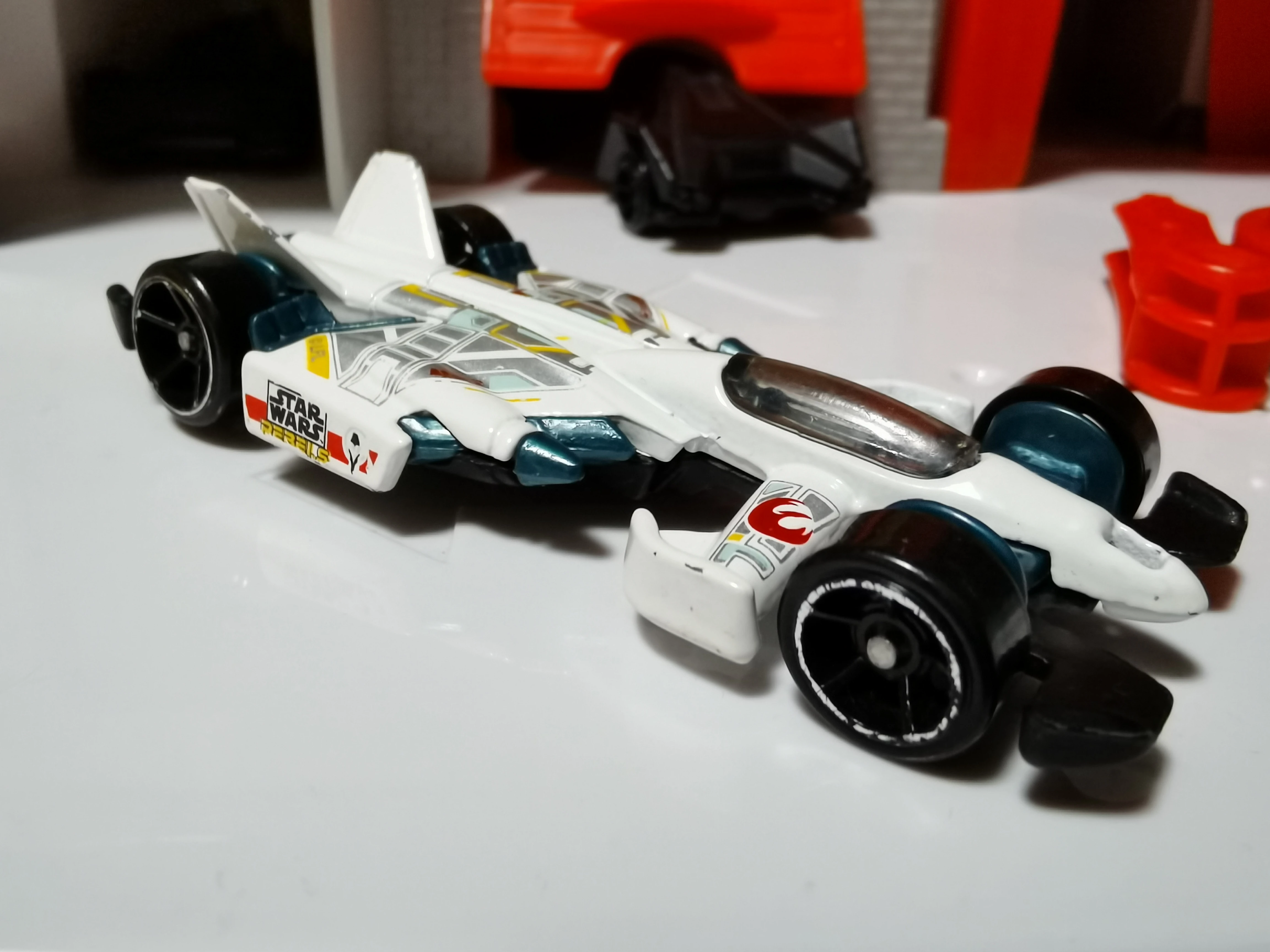White | Silver, Yellow, Red, & Aqua deco across top, Phoenix Squadron logo on top, 'Star Wars: Rebels' on sides | Matte Black / Metal |