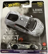 "LB-WORKS HURACAN ver.2 Complete Body kit with exchange fender type" is the designation for a body kit designed by Liberty Walk, a Japanese aftermarket automotive company, intended to be fitted on the Lamborghini Huracán. It consists of front, side and rear diffusers, wide fenders, a ducktail-style wing and an "exchange fender". Prices start at ¥2.882m or USD27,200.