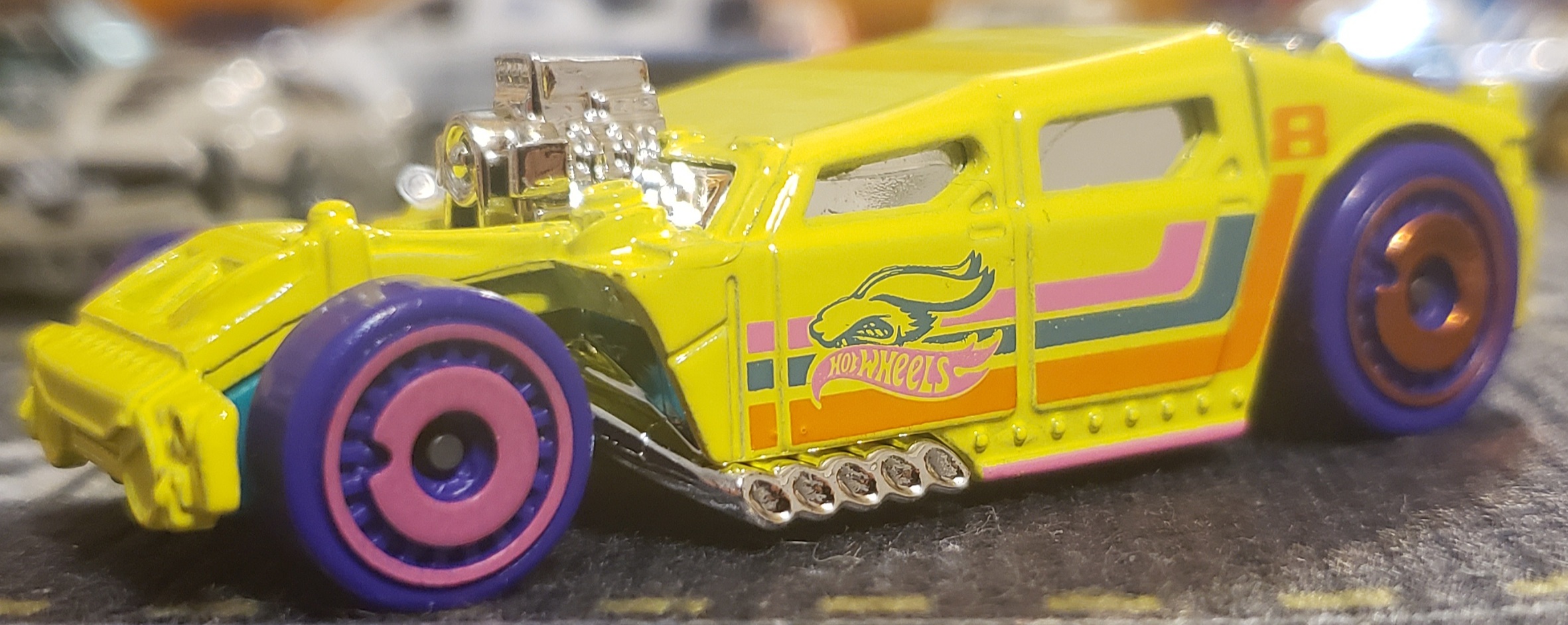 Lethal Diesel is an unlicensed casting depicting a low-riding hot rod made out of scrap parts, resembling a HUMVEE.