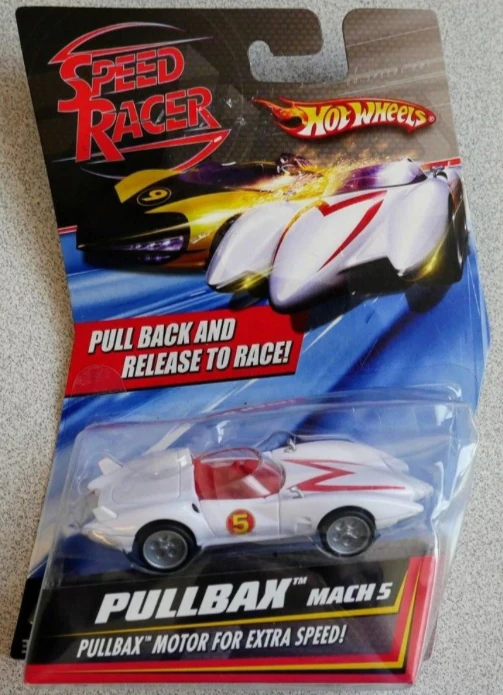 The Mach 5 is a 1:43 Pullbax release that first debuted in 2008 to coincide with the release of the Warner Bros. film Speed Racer. It is a 1:43 depiction of the Mach 5 casting and features a specialized pull-back motor within.