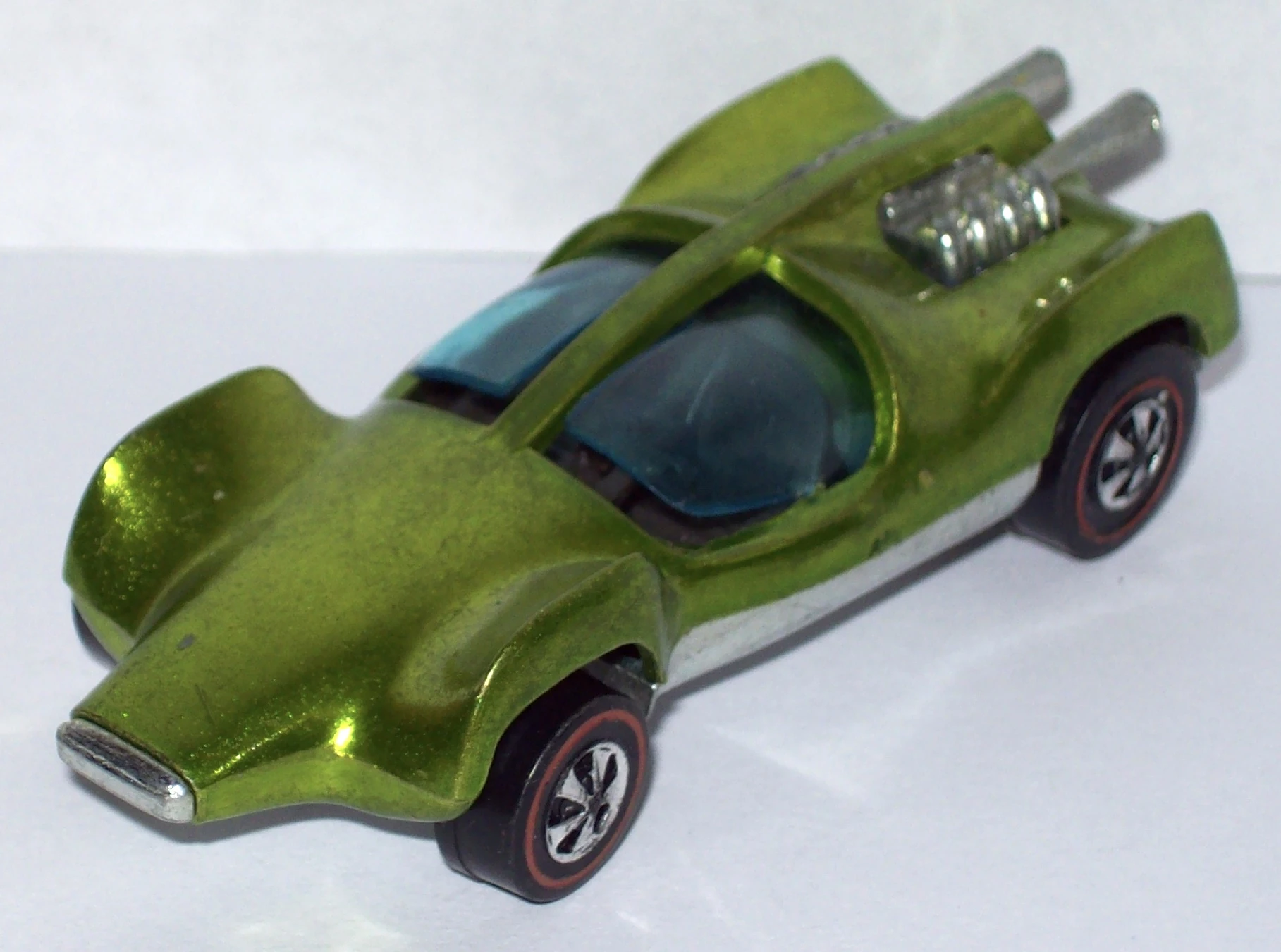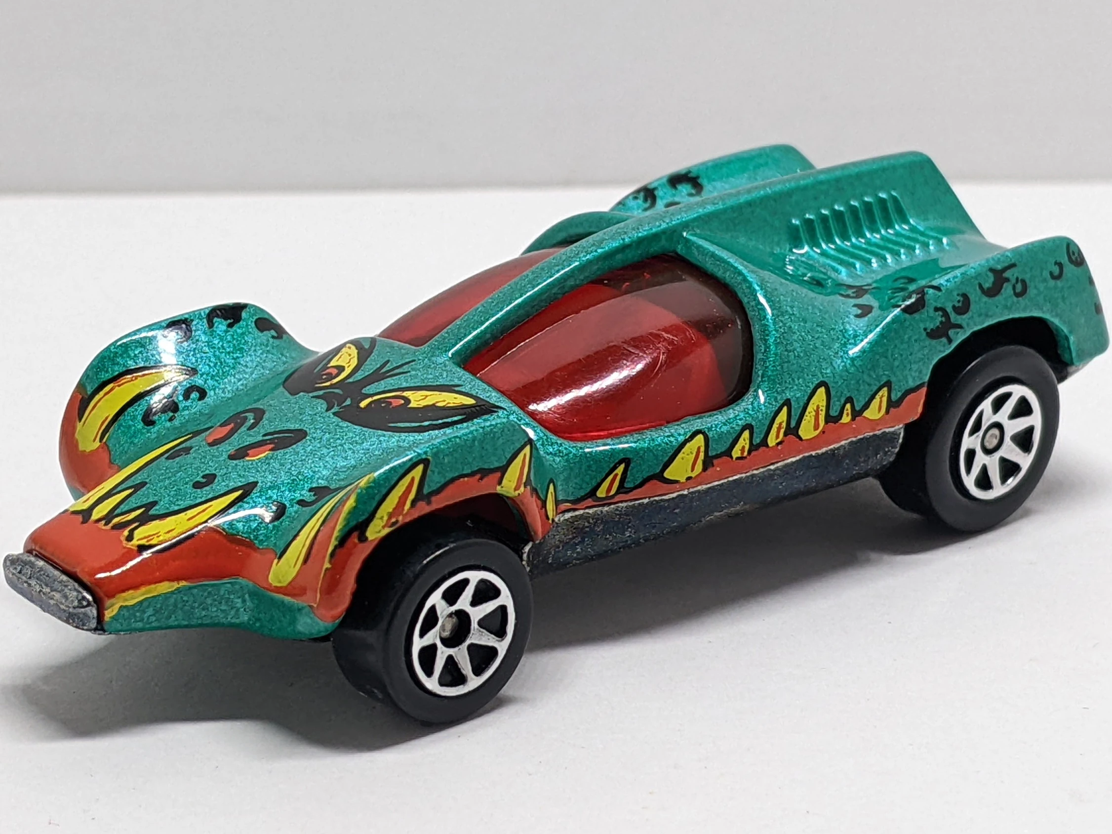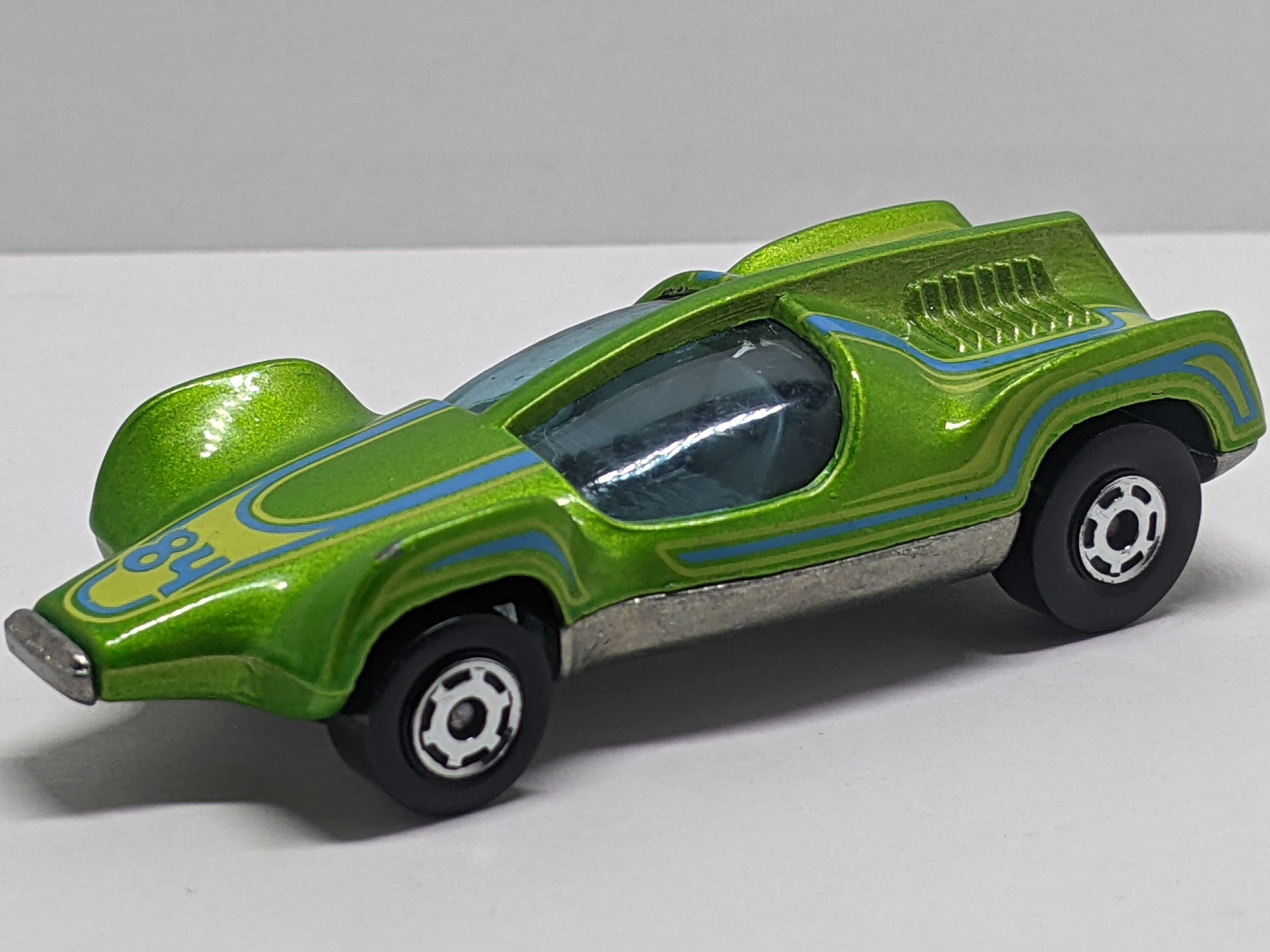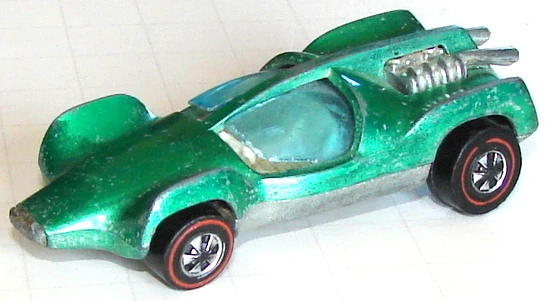 This casting was first released as Mantis for 1970. It has an opening canopy and an exposed metal engine/exh. pipes. For the 1973 release the name was changed to Double Vision and solid louvers replaced the exposed rear-mounted engine. The casting was later renamed Speed Seeker for three releases from 1984 through 1987. After a nine-year absence it was again released a few more times with a new name of Speed Machine. The major difference for the latest release is that the canopy doesn't open.