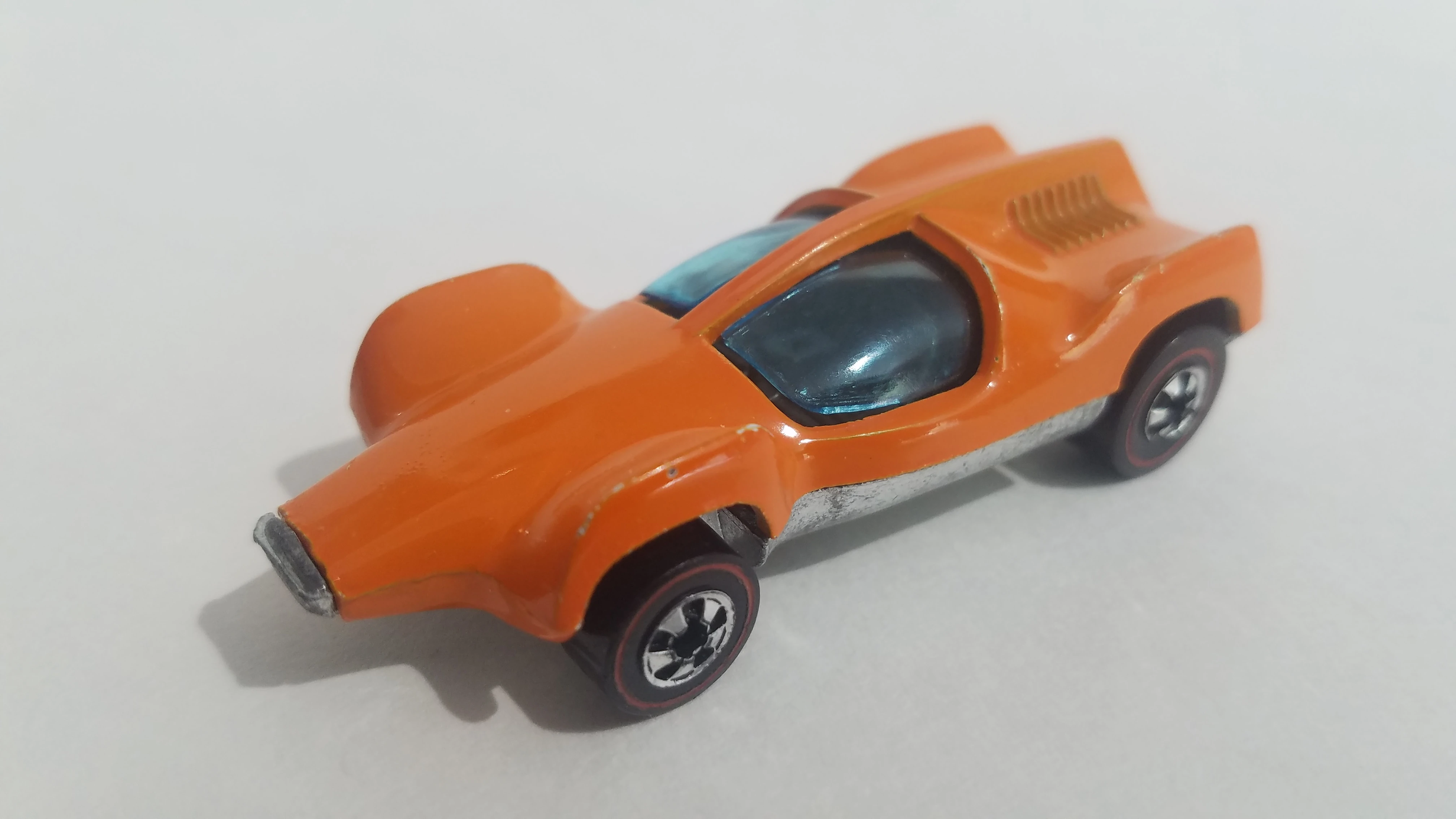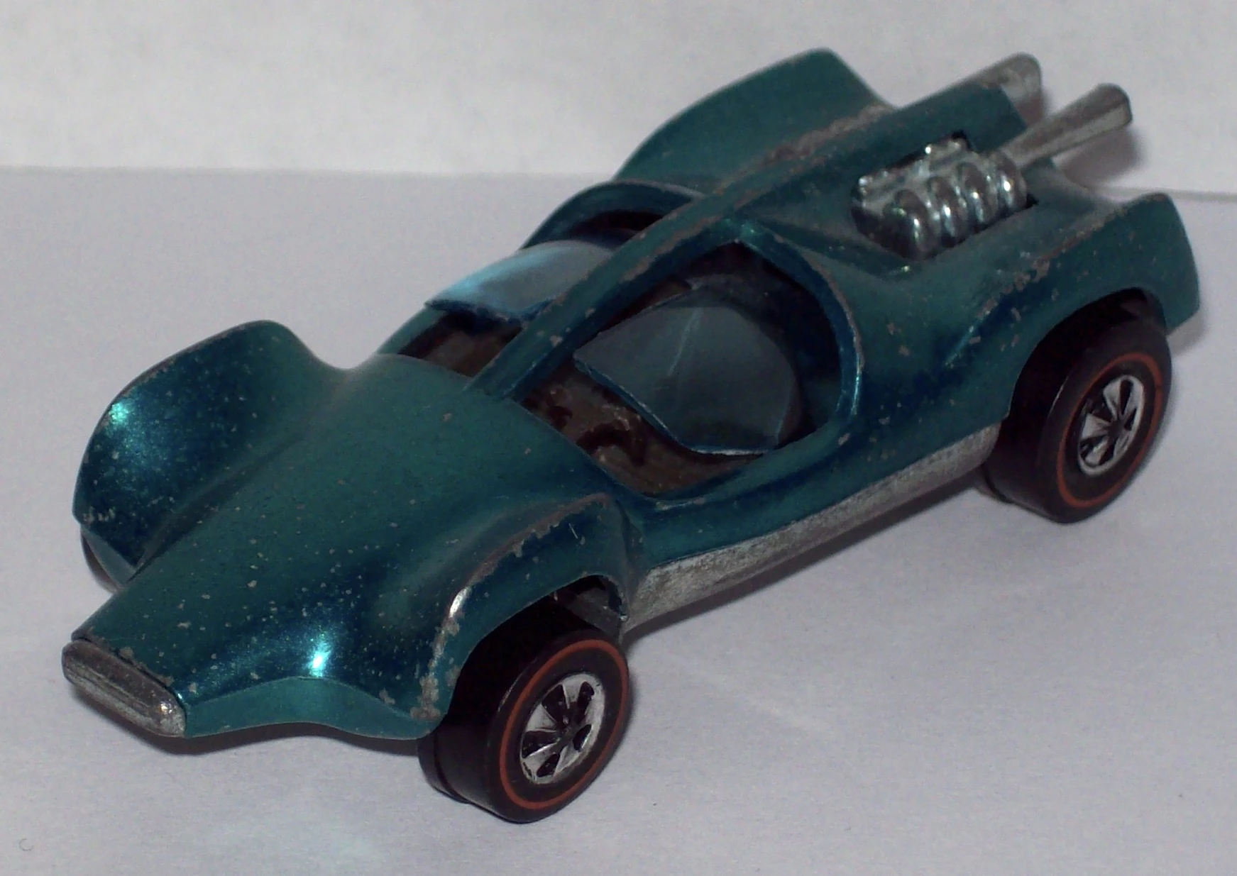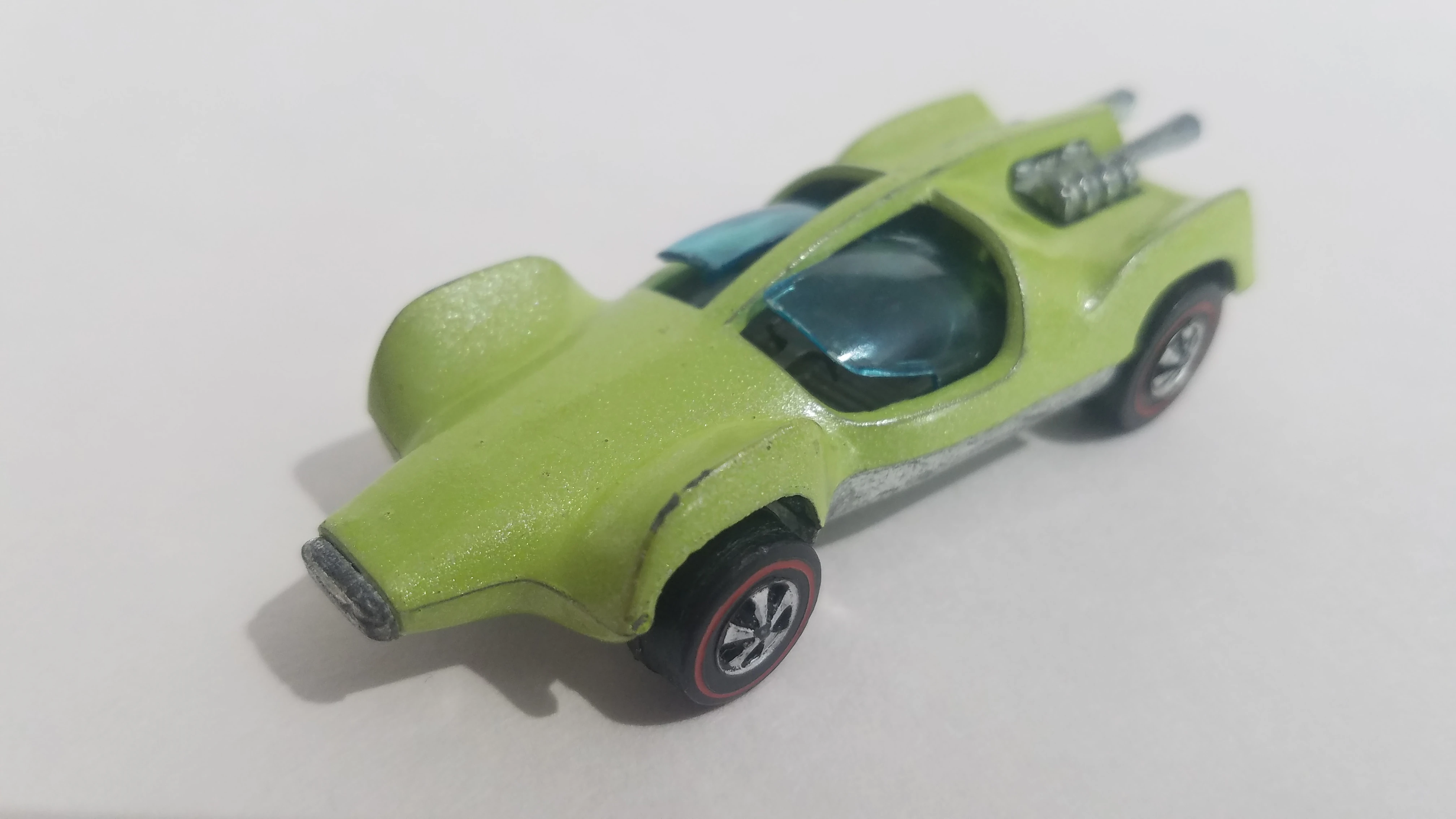 This casting was first released as Mantis for 1970. It has an opening canopy and an exposed metal engine/exh. pipes. For the 1973 release the name was changed to Double Vision and solid louvers replaced the exposed rear-mounted engine. The casting was later renamed Speed Seeker for three releases from 1984 through 1987. After a nine-year absence it was again released a few more times with a new name of Speed Machine. The major difference for the latest release is that the canopy doesn't open.
