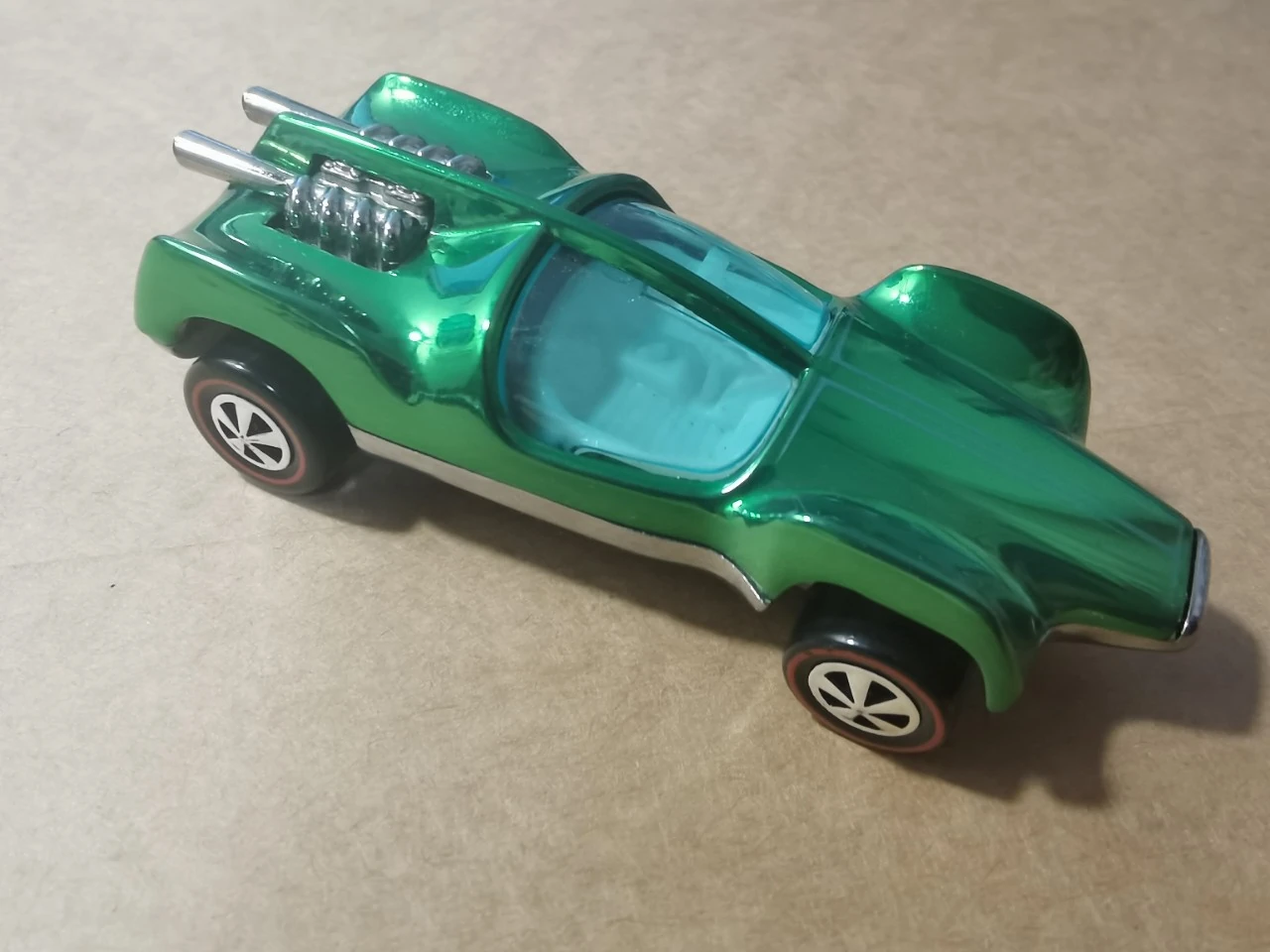 Spectraflame Green | Light green pinstripes across top | Chrome / Metal |