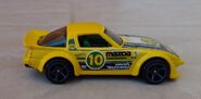 This casting is based on a 1980 Mazda RX-7 owned by Mattel lead painter Brandon Ozaki, featuring a widebody kit inspired by IMSA Grand Touring Under (GTU) cars. The name on the side also references his son (who has the same initials) and was born on the 20th.