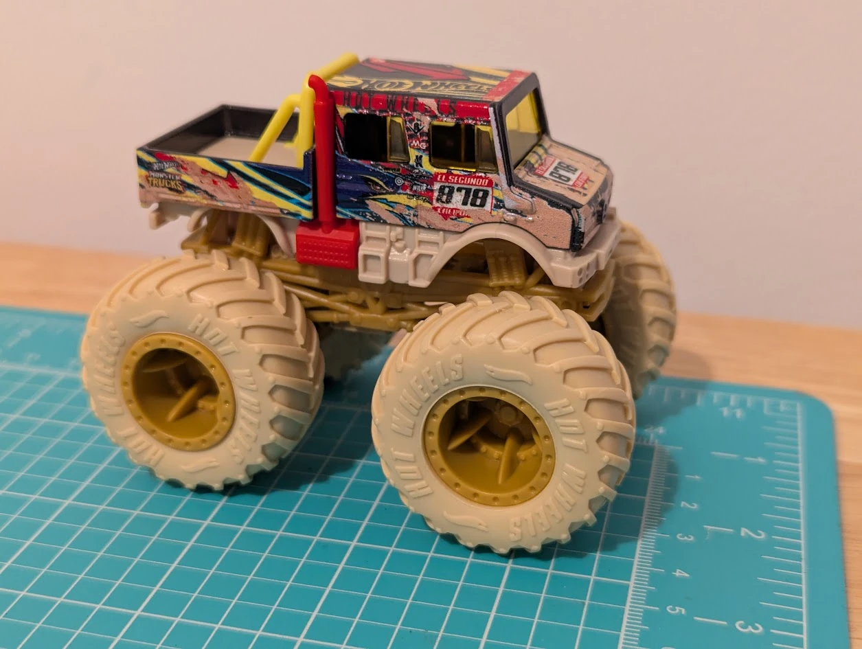 | 2022 | Hot Wheels Monster Trucks: Demolition Doubles | Navy Blue | Multi-colored graphics, Yellow HW logo on roof, MT & sponsors logos, Mud splashes | Tan / Plastic |