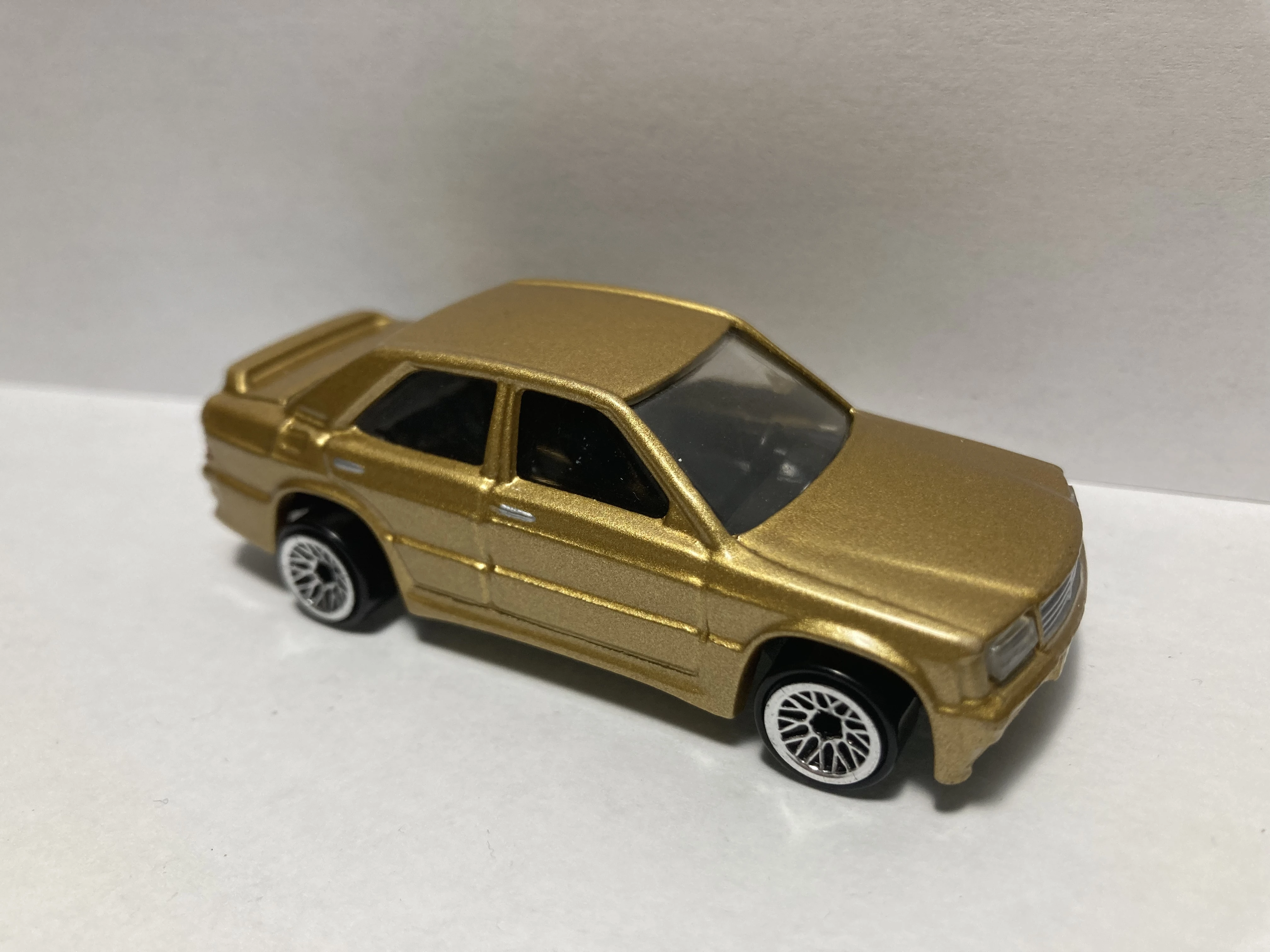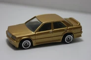 This model is a replication of the 1985 Mercedes 190E, a casting originally released by Corgi in 1985. Corgi packages in the 1980s cited this car (in both German Police Livery, racing deco and plain colours) as "Mercedes-Benz 2.3/16". Hot Wheels lists this casting as “Mercedes 2.6” 2.6 referring to the 2.6-litre, 160 horsepower Inline-6 engine introduced at the Frankfurt International Motor Show in September, 1985.